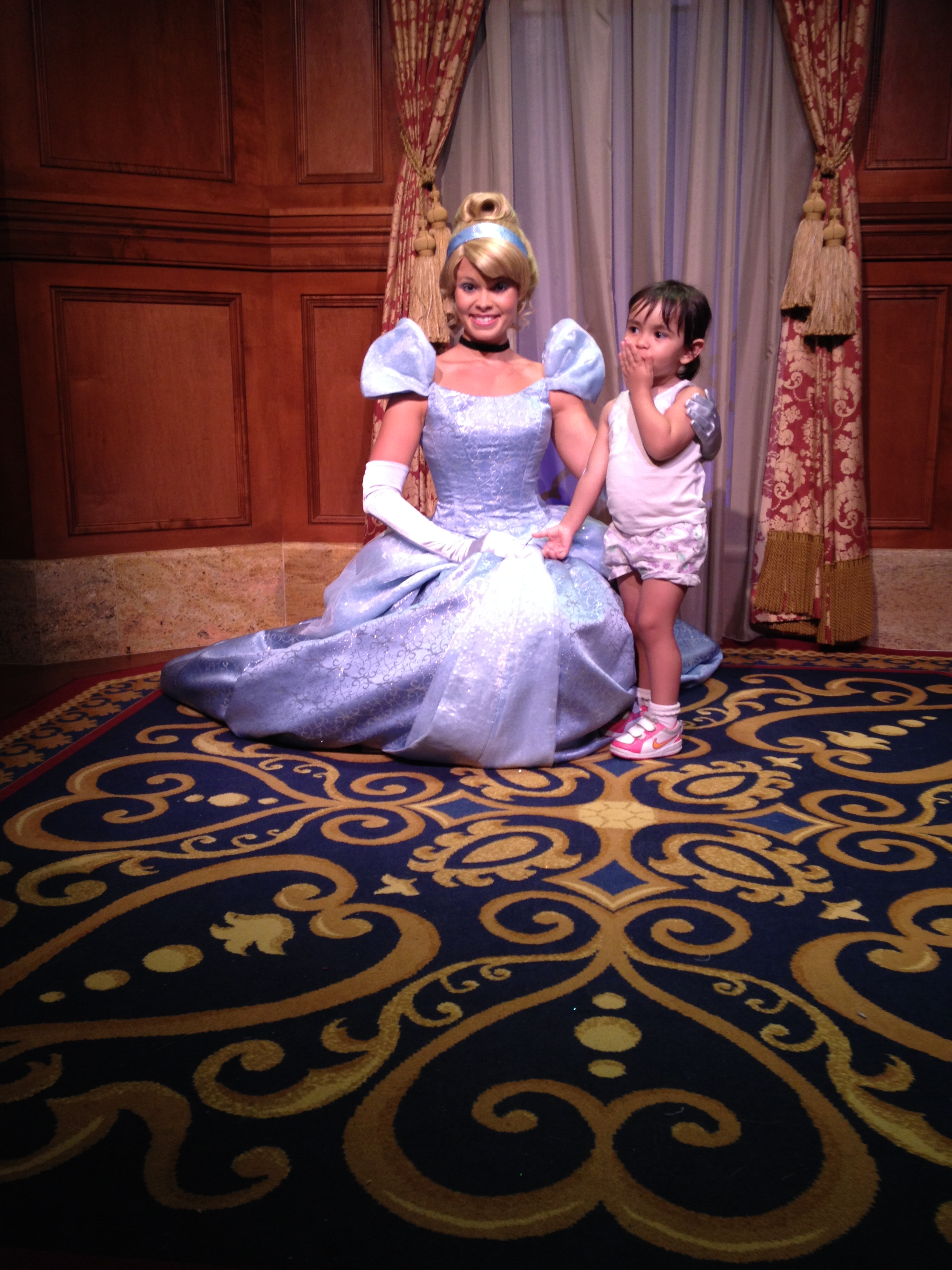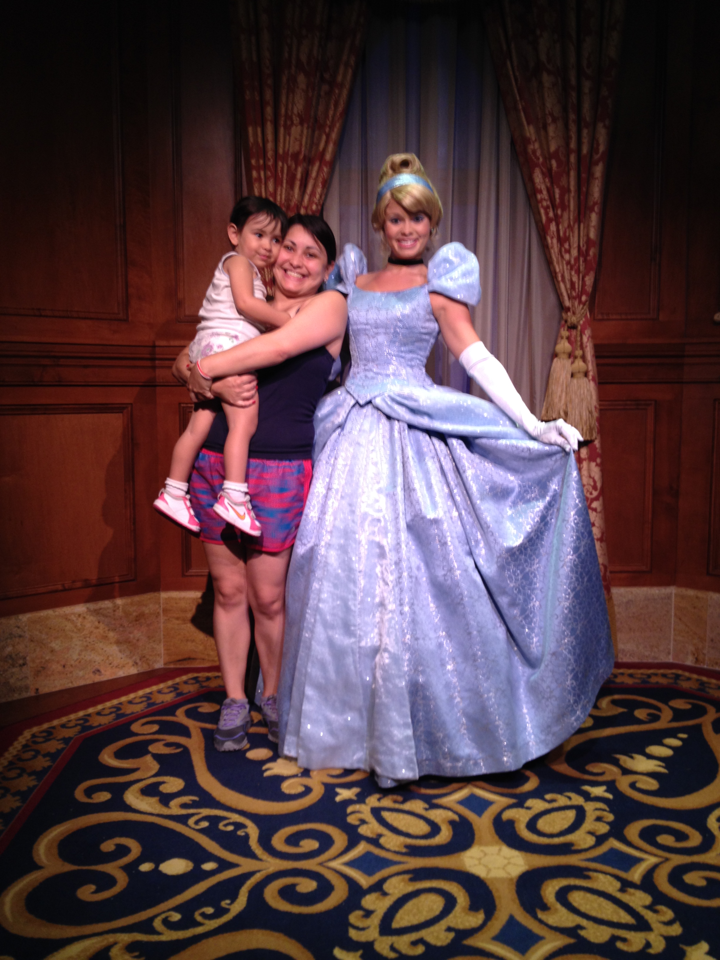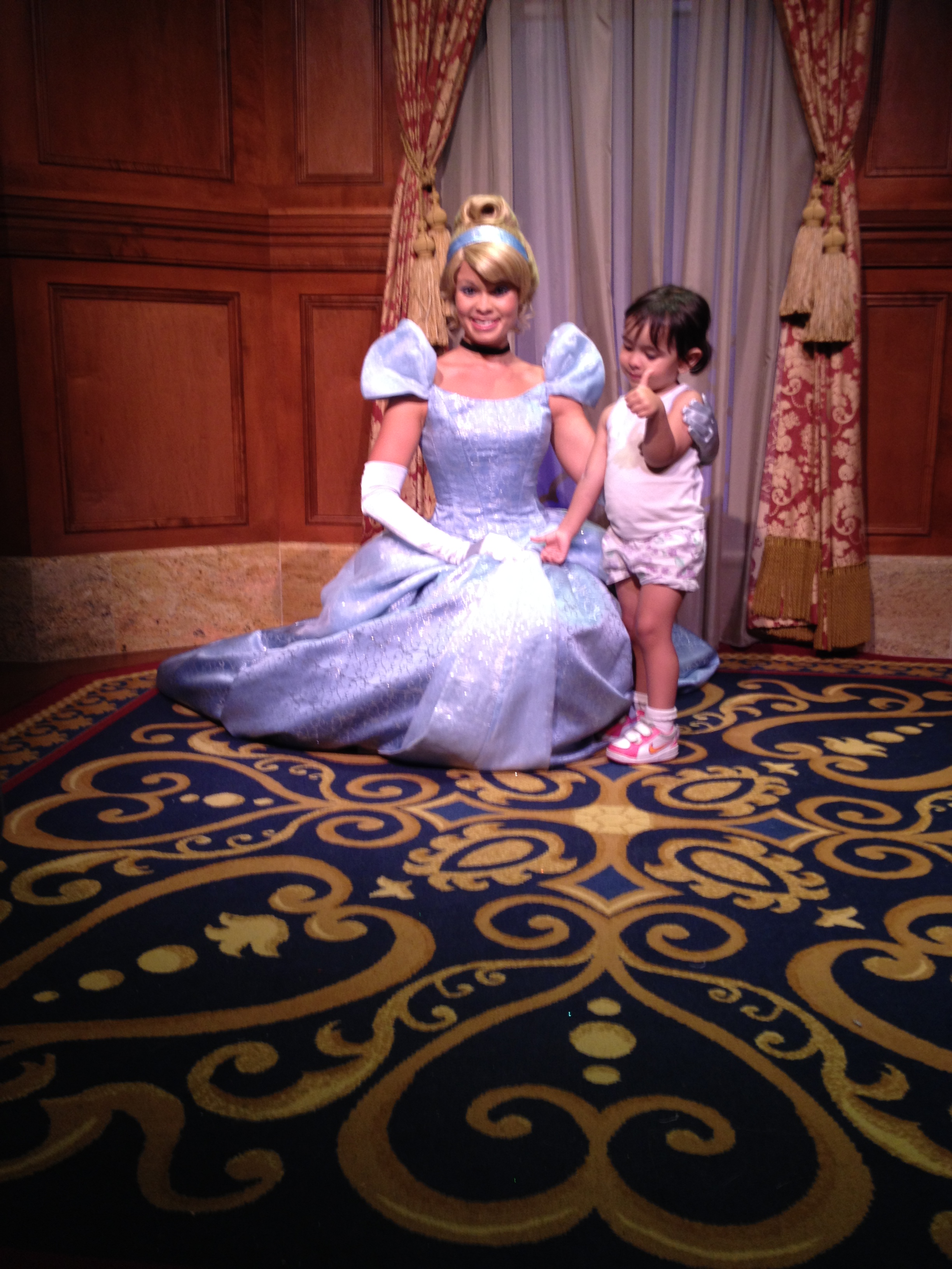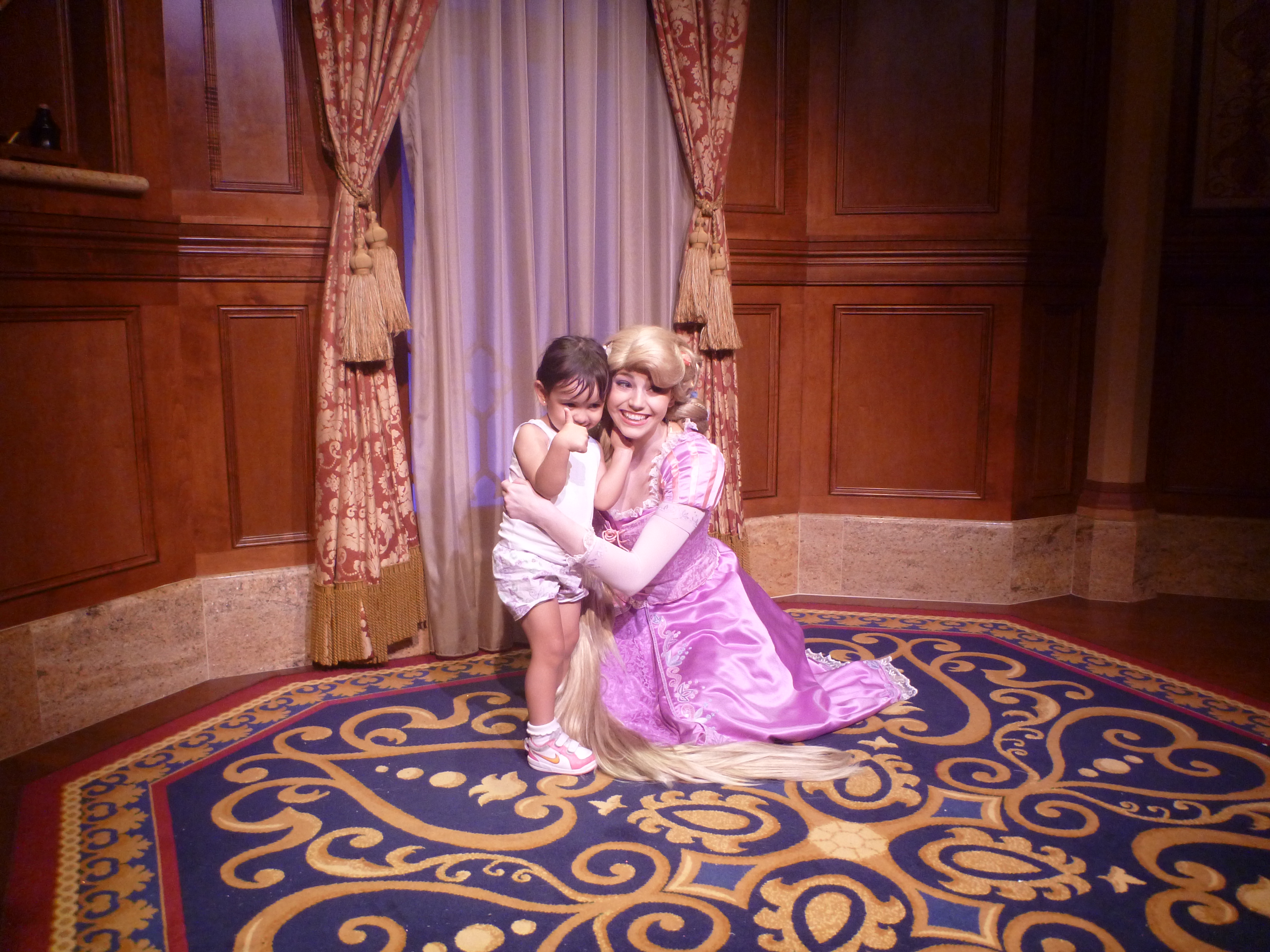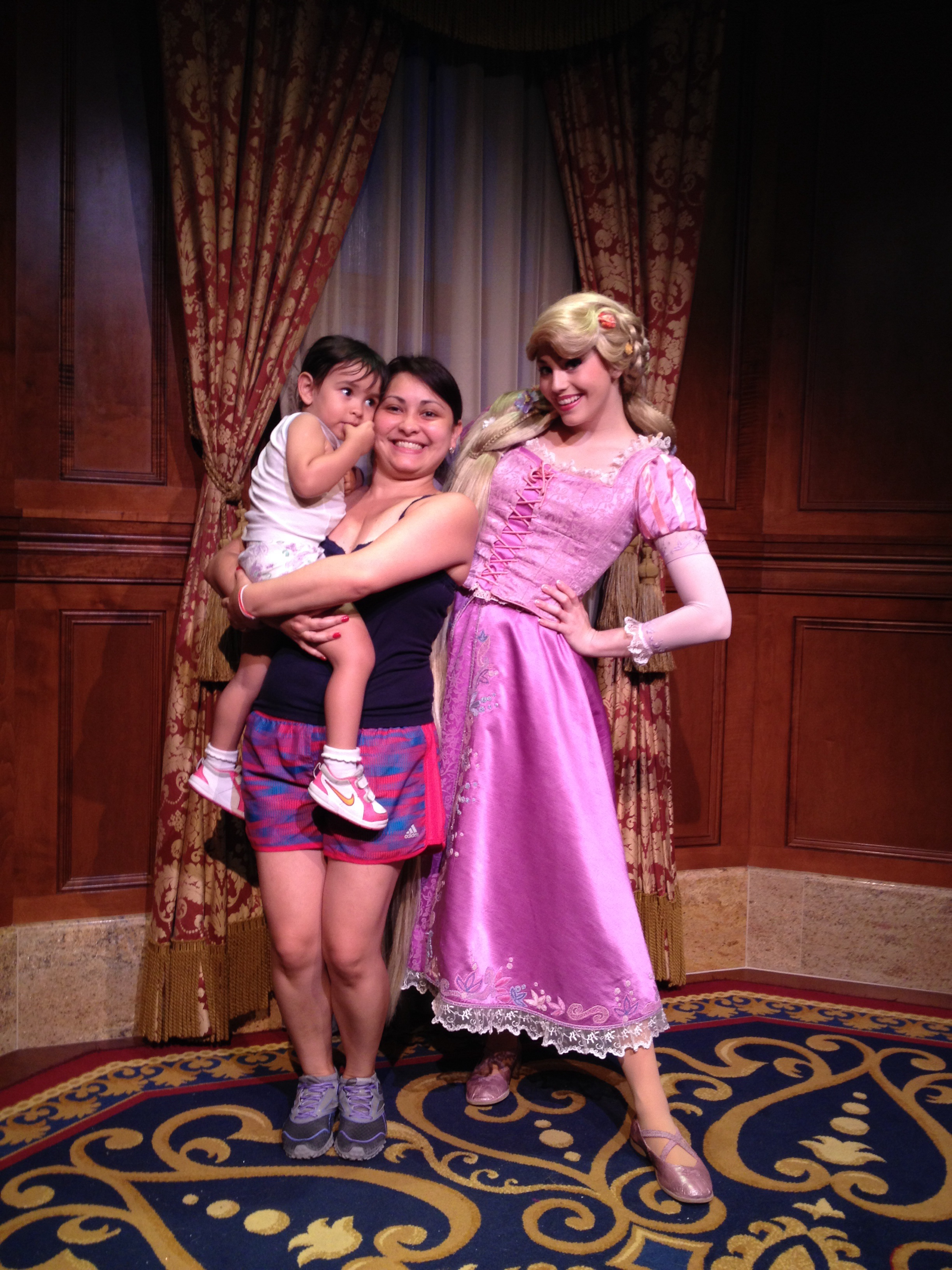 Conseguimos entrar na fila da princesa Rapunzel e da Cinderela. Na parte de fora estava 40 min mas levou uns 30 min.
