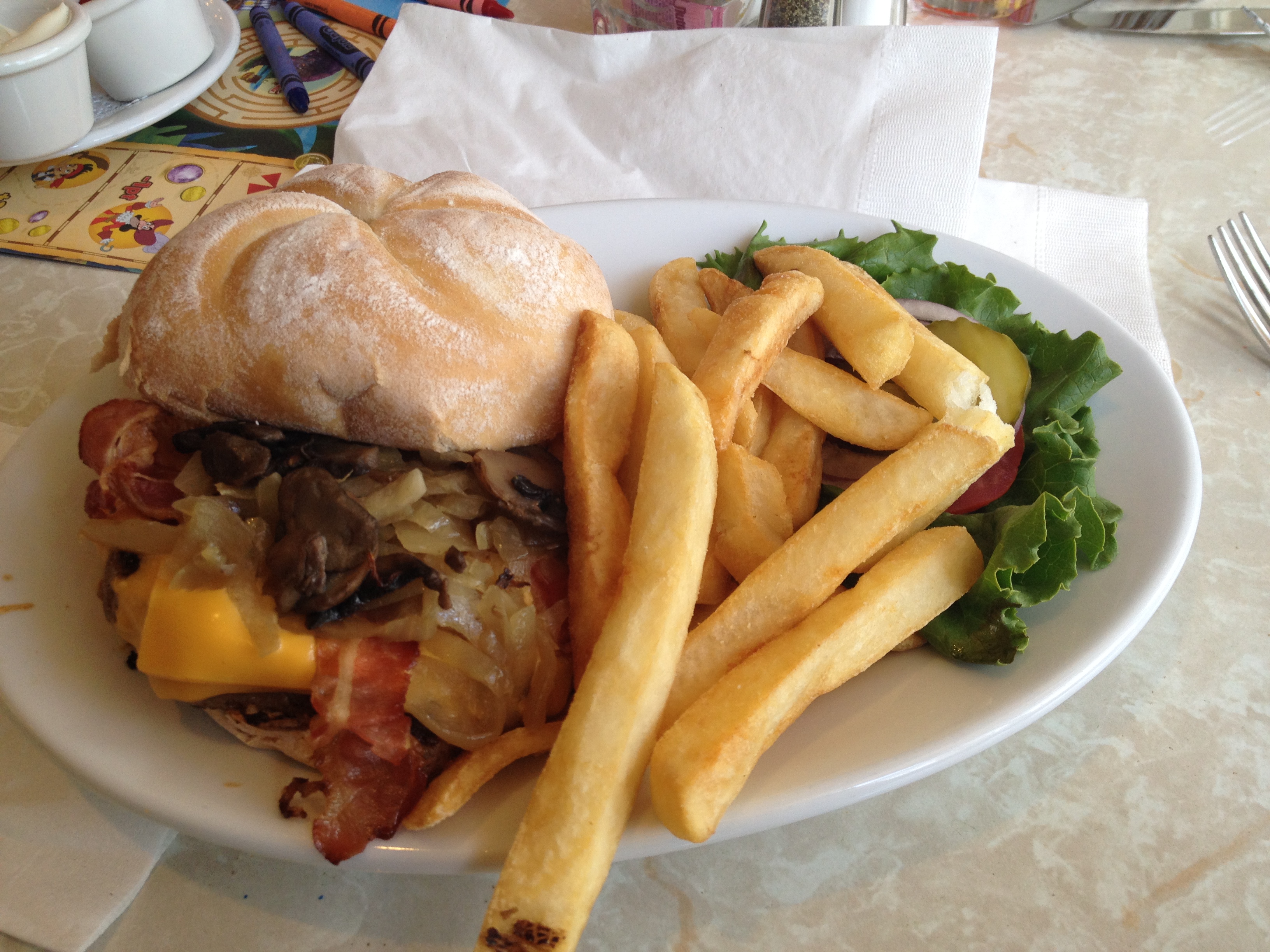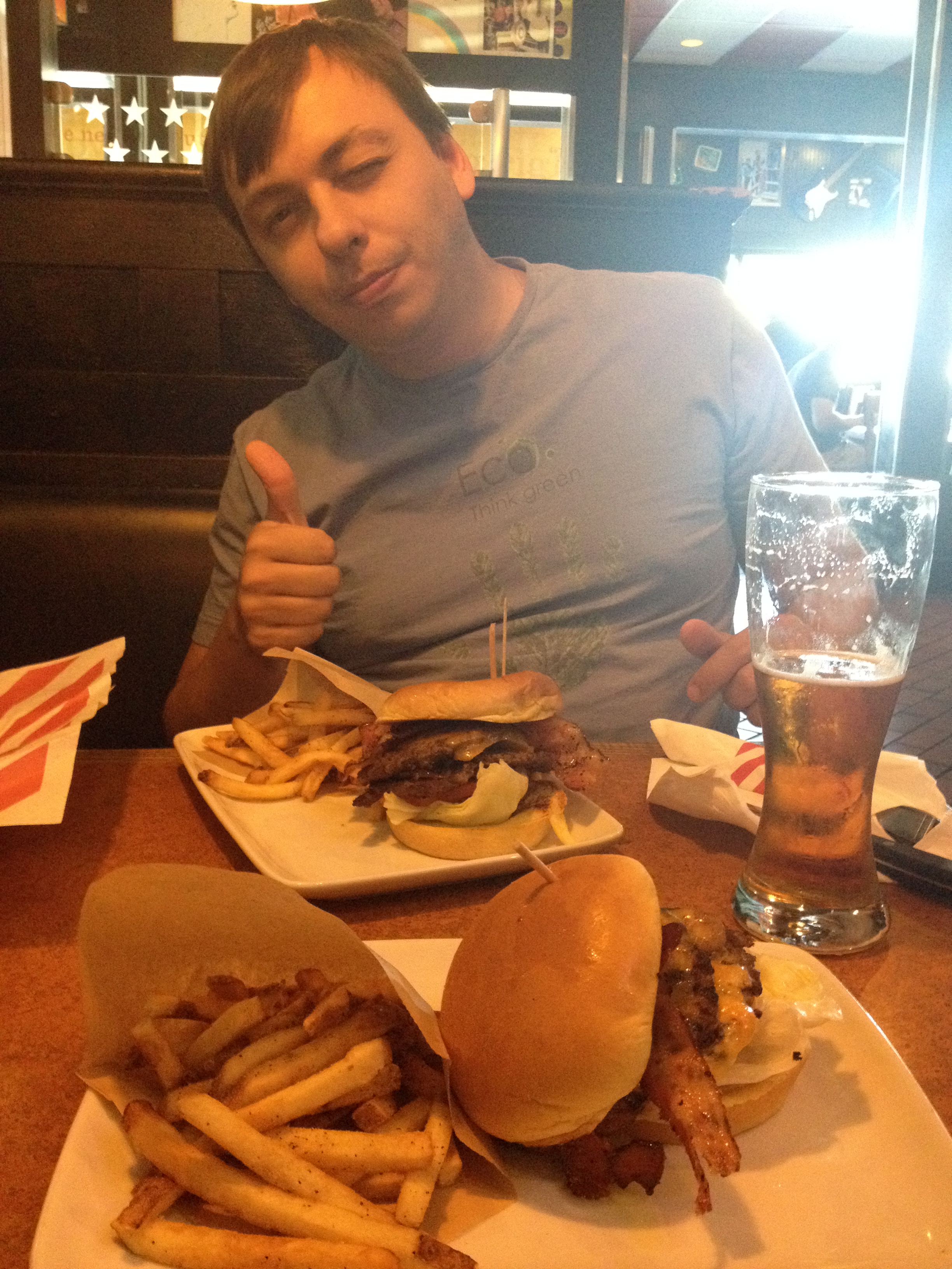 Eu e o Thiago pegamos um hambúrguer, um outro lanche + cheesecake. A Jú só quis comer o bolo de chocolate e um pouquinho de batata frita! Tadinha, essa tá comendo pouco por aqui e super mal. Voltando para o Brasil ela comerá muuuito arroz, feijão, carninha e legumes! rssss