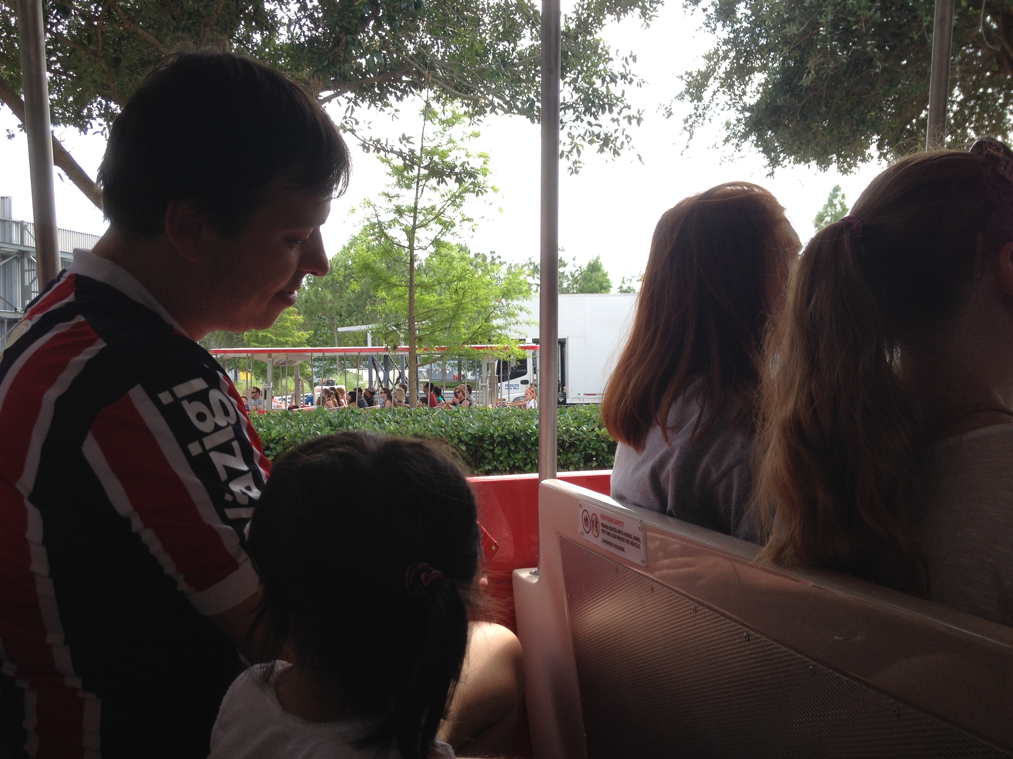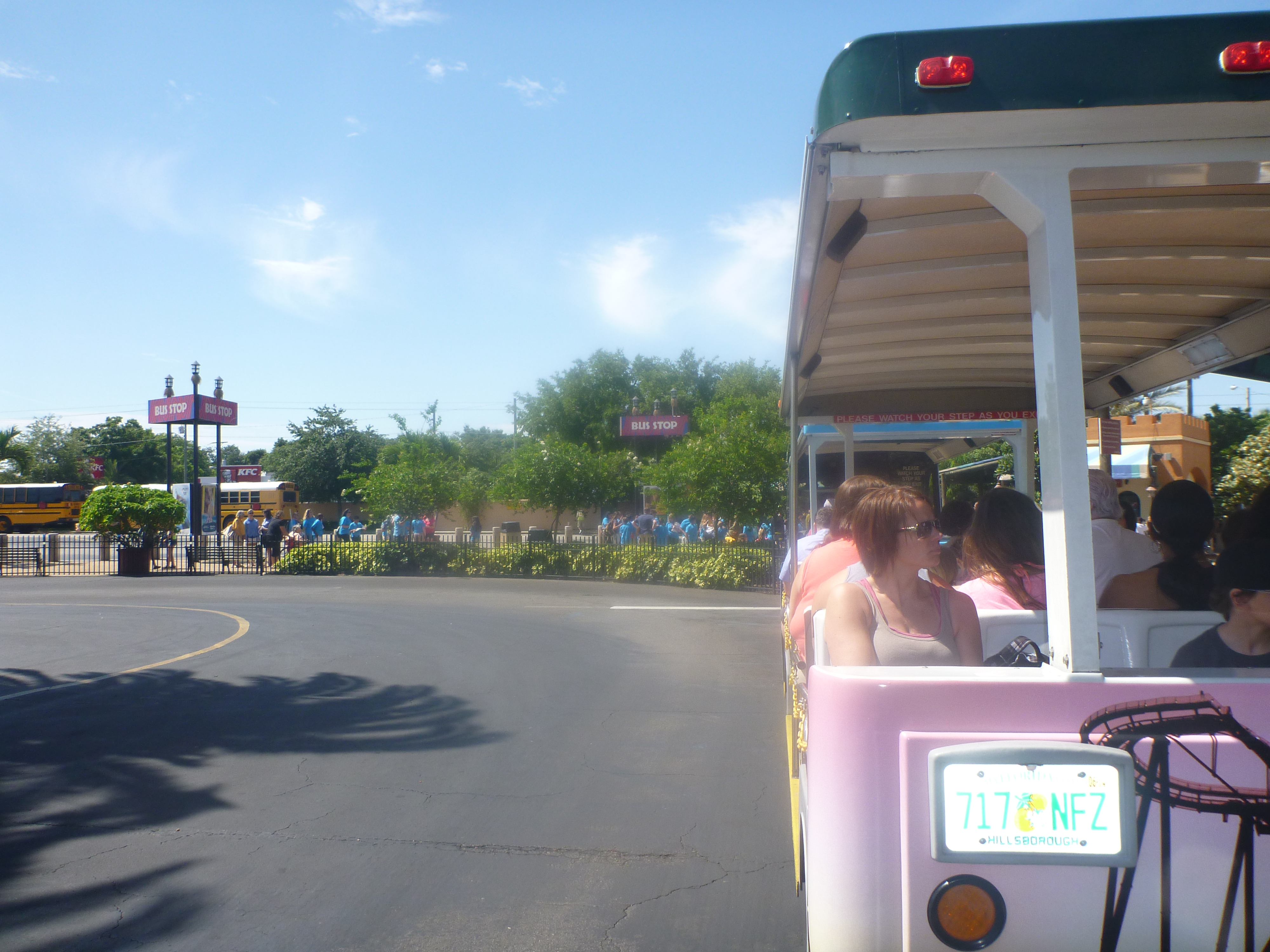 Pegamos um “trenzinho” do estacionamento até a entrada, que não é a principal do parque, pois você ainda precisa atravessar o lado pelo ferryboat ou por um trem para chegar na entrada principal da bilheteria do parque.