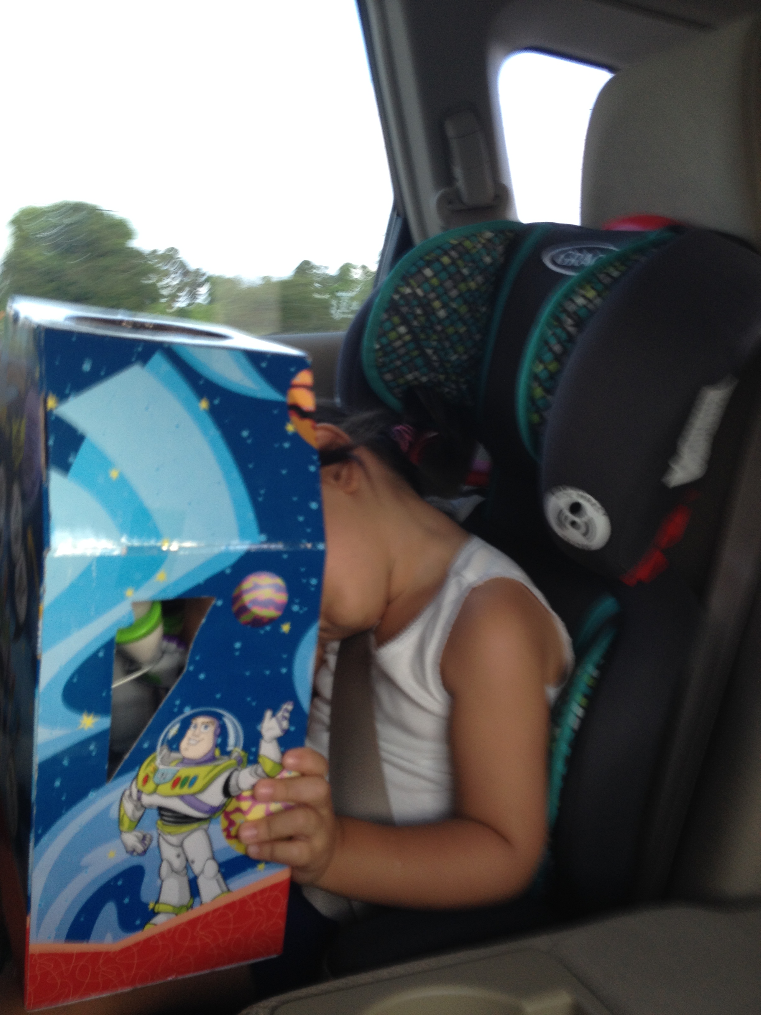 Só para explicar, a foto a cima ao lado direito é a Julia dormindo no carro na volta para o hotel. Ela está segurando a caixa do brinquedo Buzz e fazendo dele um travesseiro! kkkk