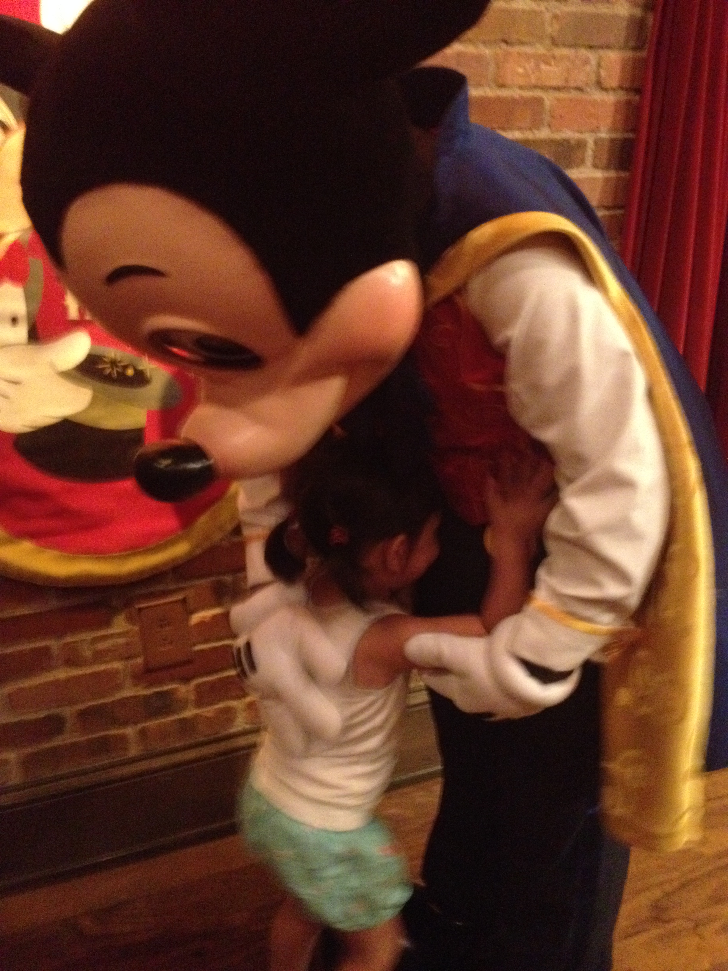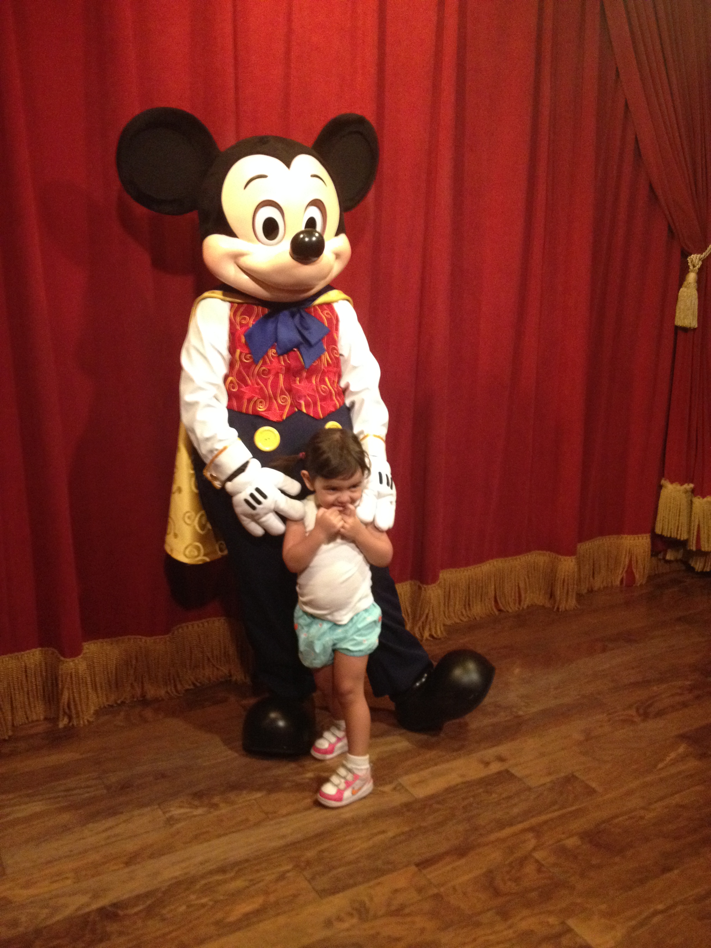 É muito estranho, mas apesar de saber que é um pessoa fantasiada de Mickey, eu comecei a ficar nervosa em termos um encontro com o Mickey. Não sabíamos qual seria a reação da Julia, mas na hora em que ela viu ele ficou toda tímida mas não foi da mesma forma das princesas!