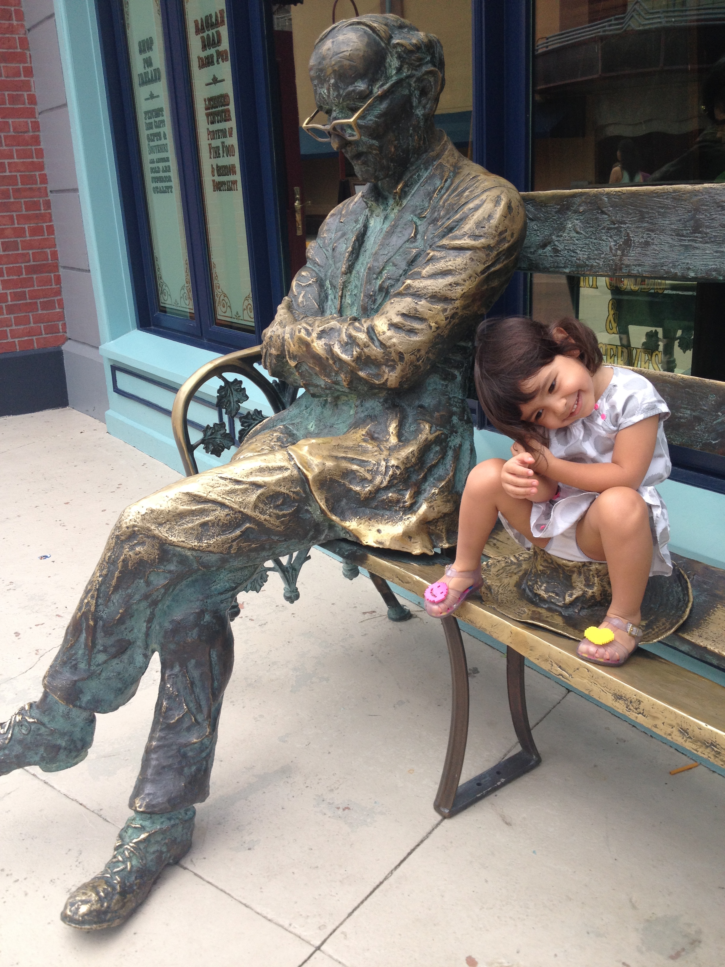 Fomos com a Julia em um brinquedo chamado “Haunted Mansion” e lá usamos o fastpass. Que bom, pois essa fila estava bem grande! Entramos em um carrinho que percorre a parte interna do castelo e a Jú não gostou pois a parte de dentro é escura e tem fantasmas, uma pequena descida com emoção que dá um friozinho na barriga mas é um brinquedo livre, não tem classificação de tamanho. Chegando no final a Julia dormiu com o escurinho! rssss.
