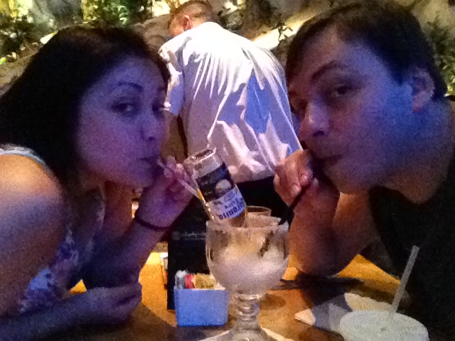 Pedimos uma cerveja diferente e sentimos o gostinho da tequila misturada com a cerveja e a “raspadinha” de gelo! Huummm, gostoso! hahahahaha