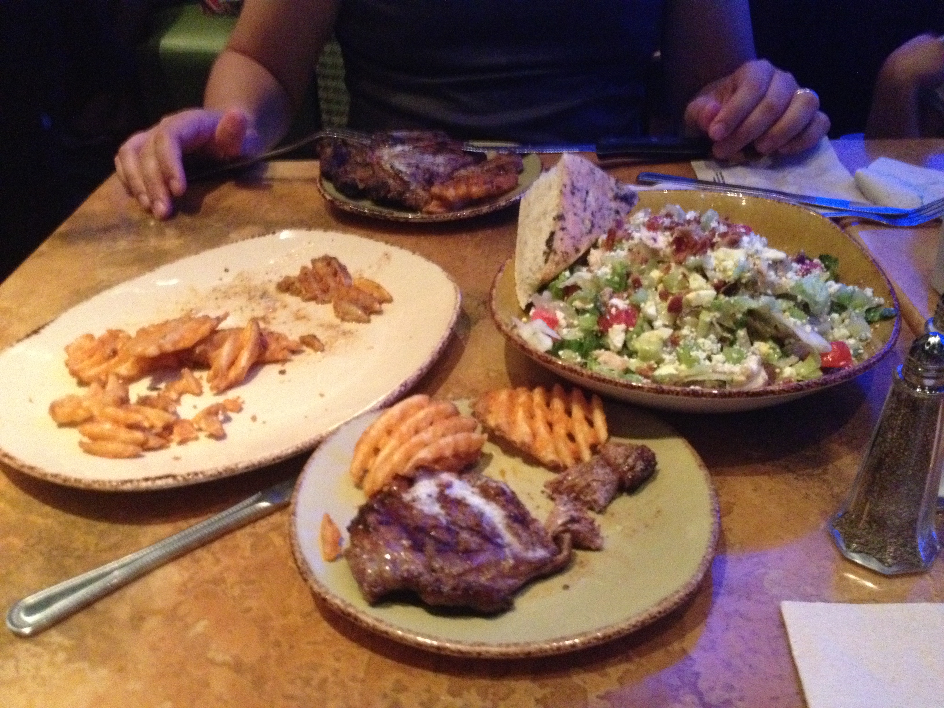 Para nós foi um prato de salada + um prato de carne com batata frita temperada e dividimos, o que serve muito bem o casal: