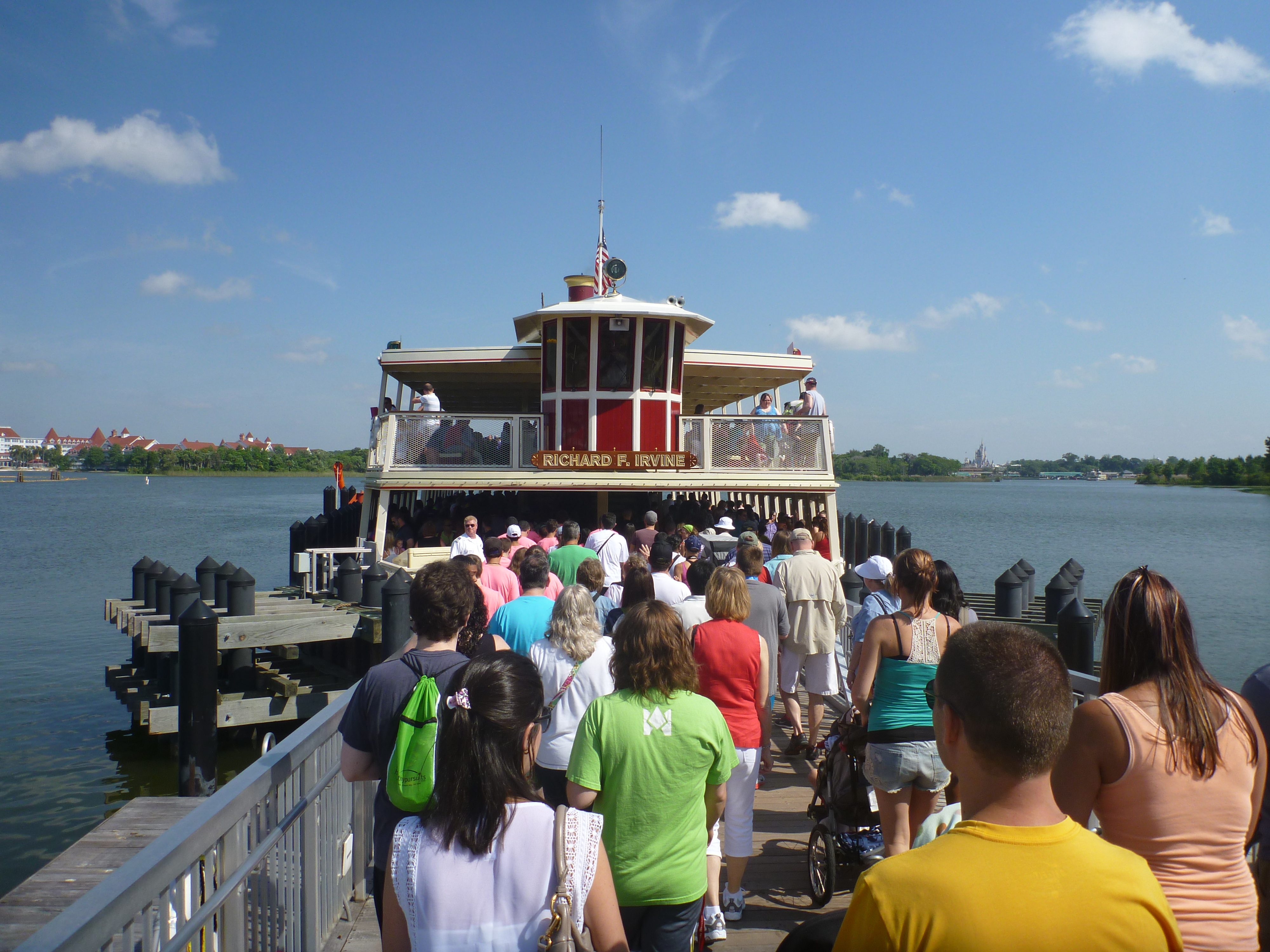 Logo que terminou a queima de fogos, já caminhamos pela main street, em sentido saída, para pegar o ferryboat. Mesmo todo mundo indo embora ao mesmo tempo, a organização do parque contribui para que todos consigam sair com tranquilidade.