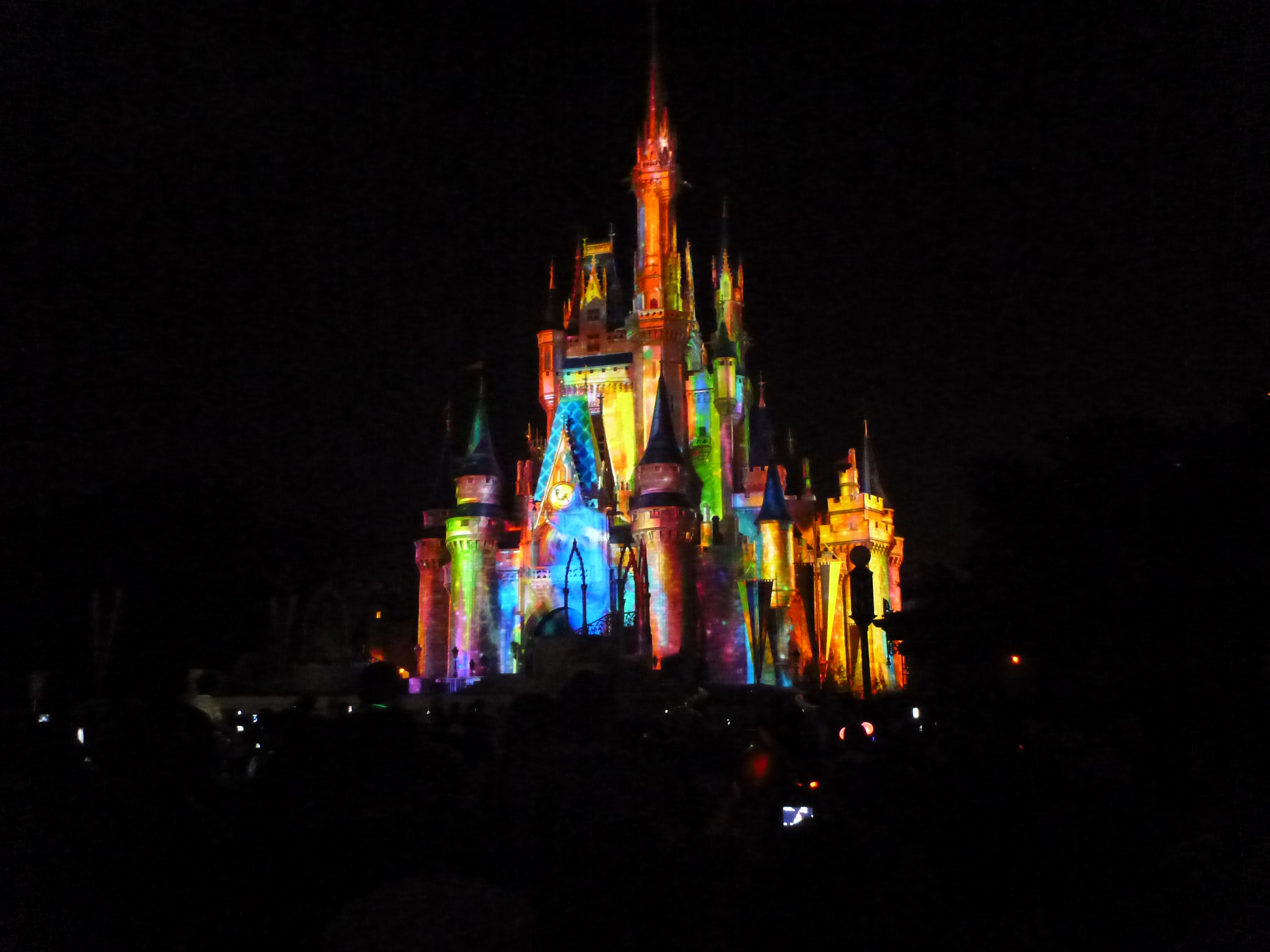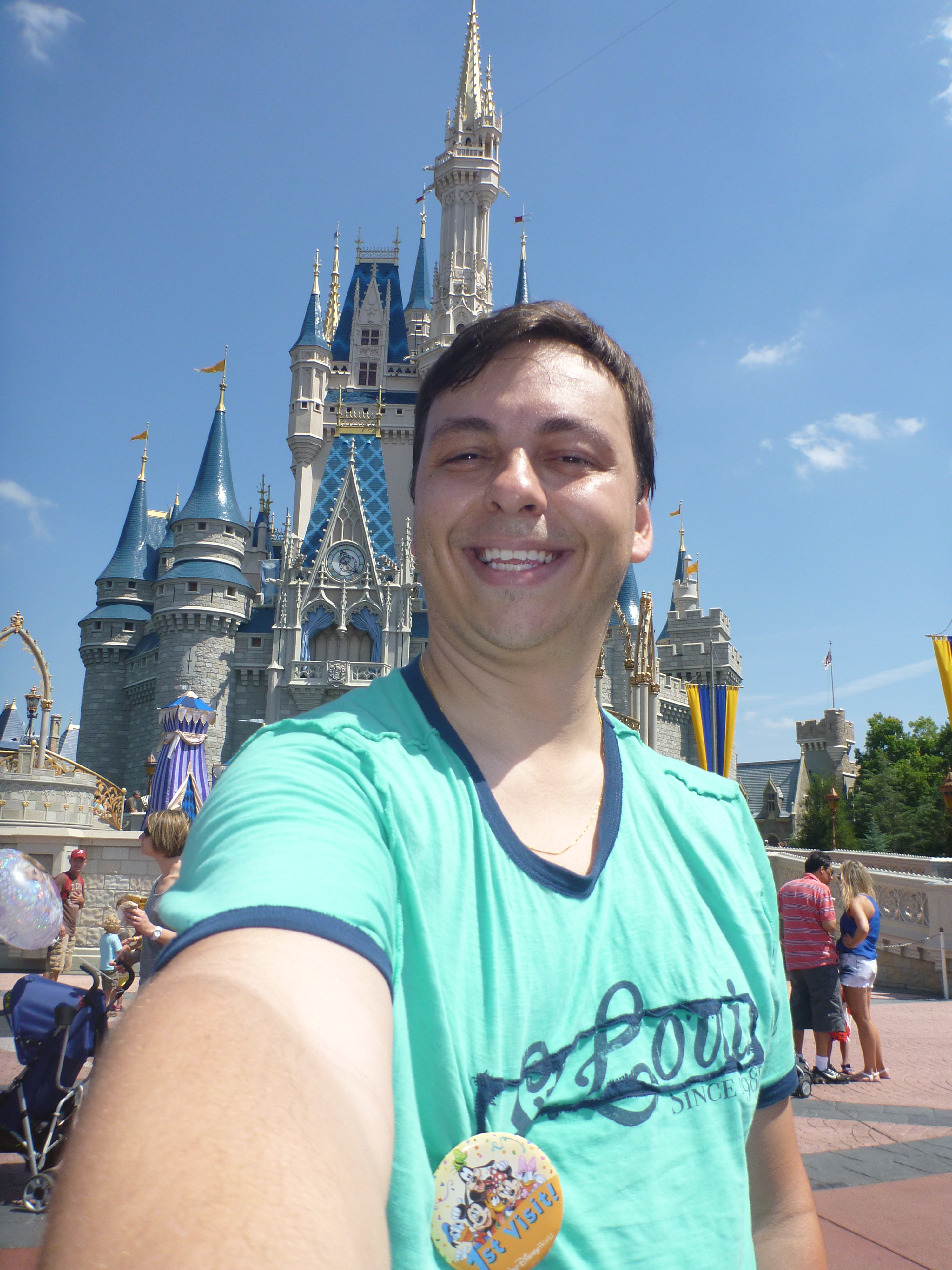 O castelo onde ocorre a queima de fogos fica logo na entrada principal do parque! É um castelo imenso, lindo e exatamente como vemos em revistas, internet, ou melhor, mais lindo vendo ao vivo!
