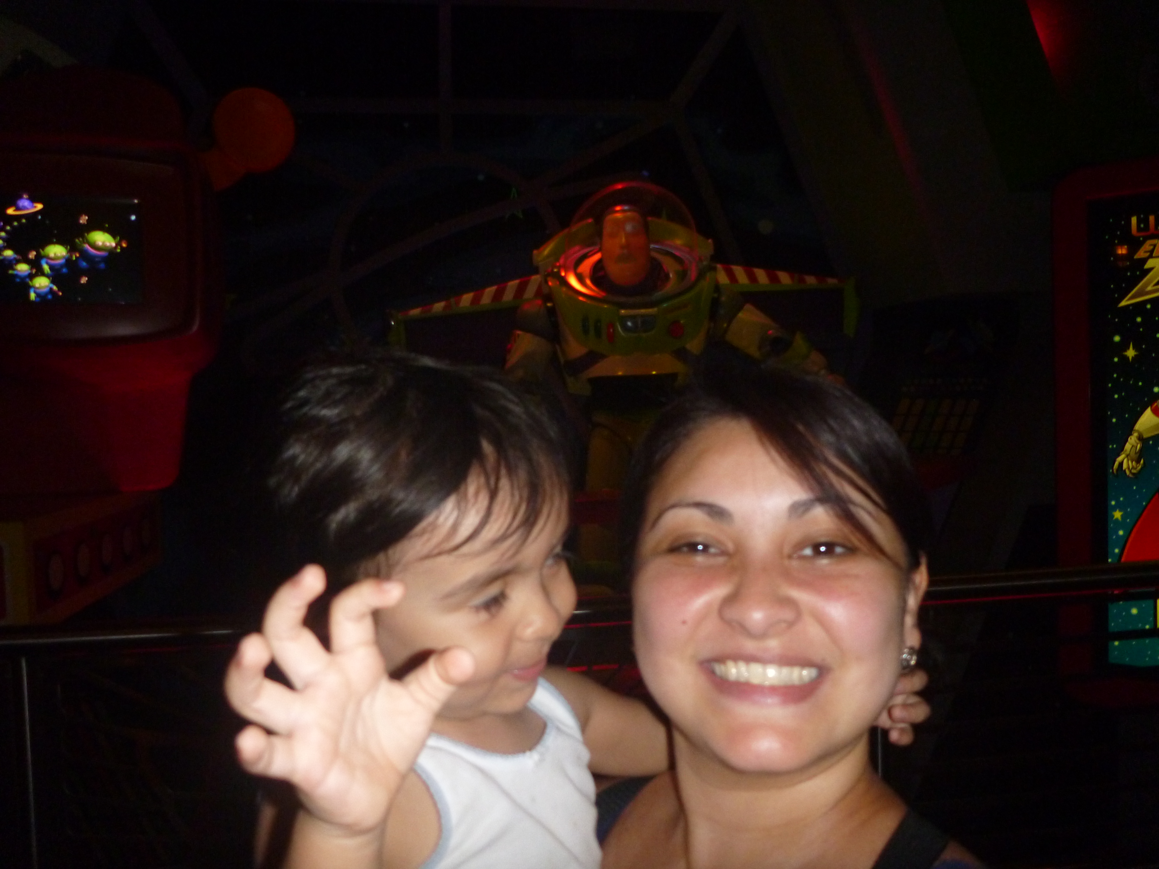 Aproveitamos mais um fastpass e levamos a Julia para o “Buzz Lightyear’s Space Ranger Spin”. Ela adorou este brinquedo, principalmente por ver o Buzz e a cadeira girar. Quem controlou a cadeira foi a própria Julia, teve horas que não parávamos de rodar! kkkk