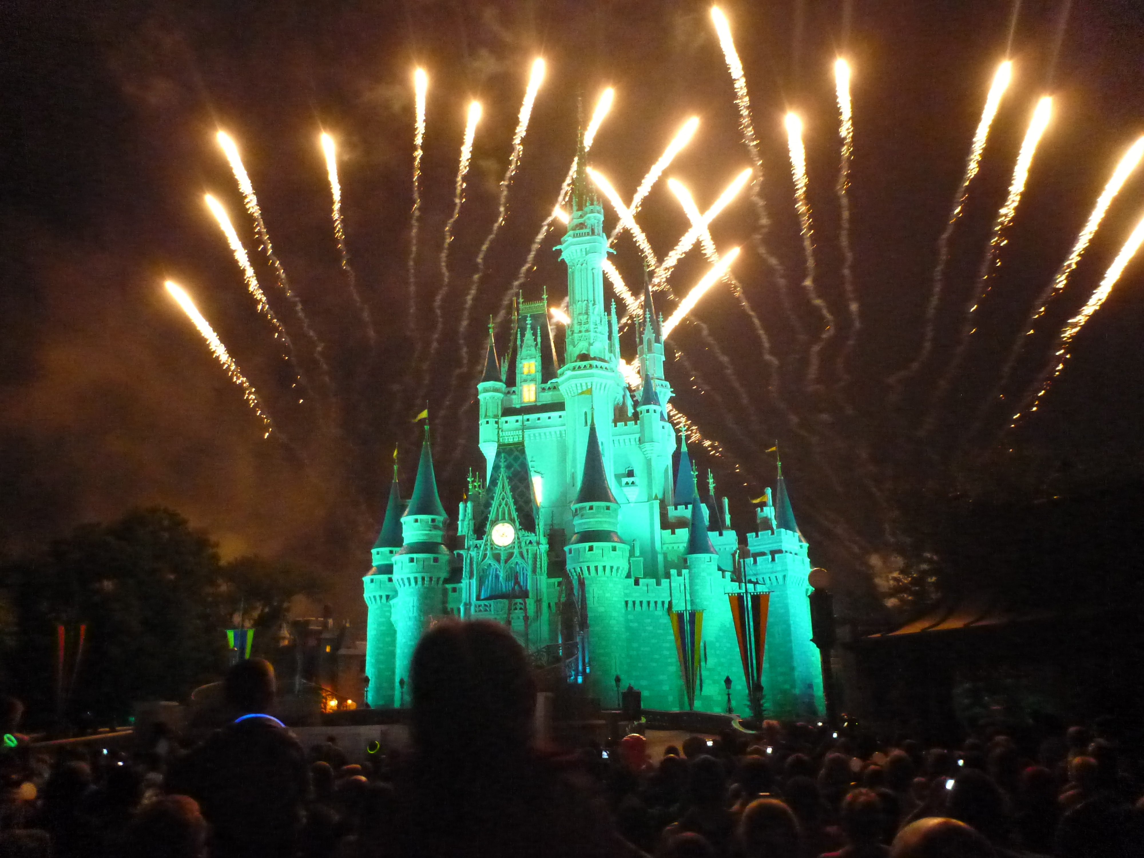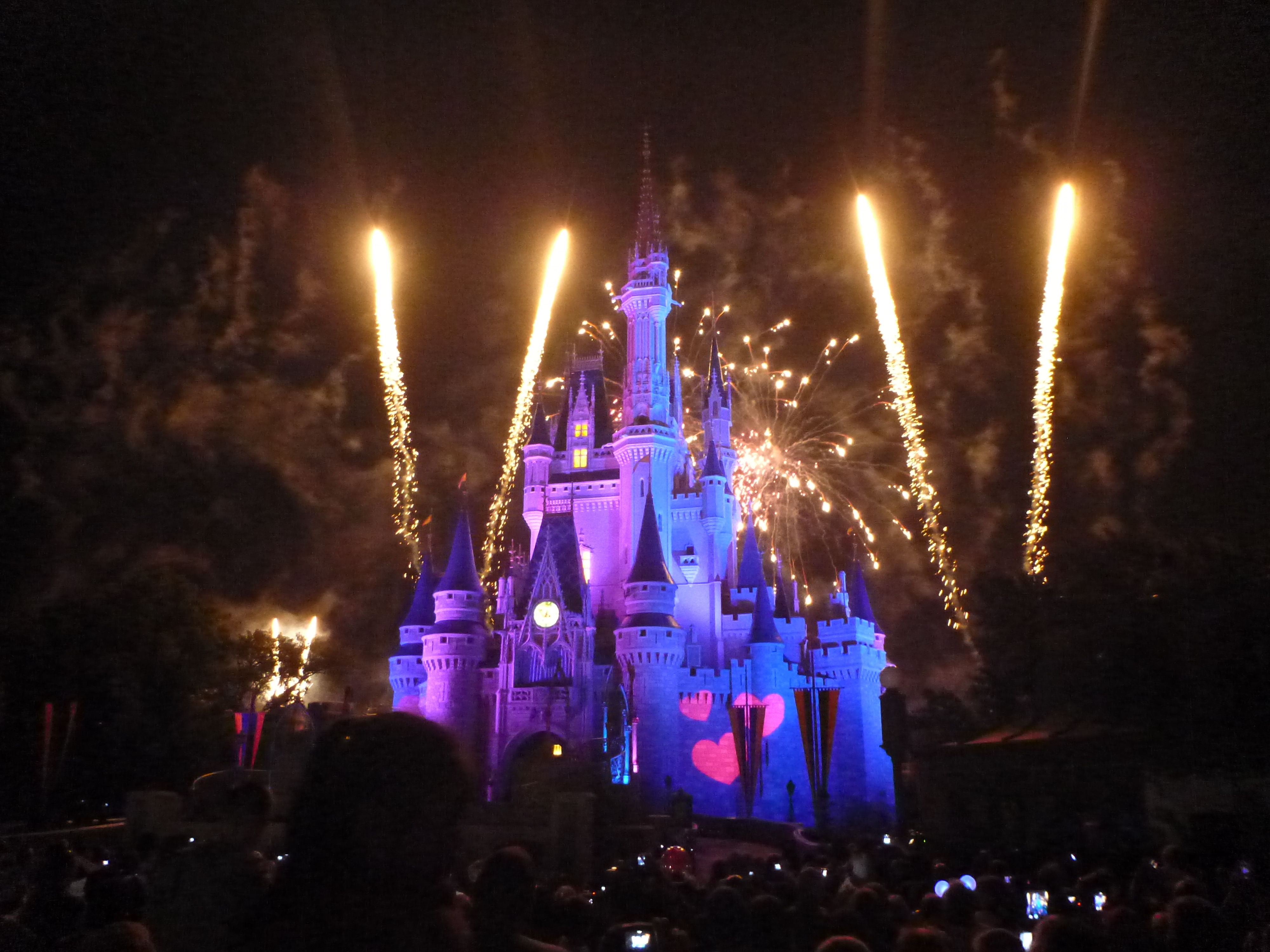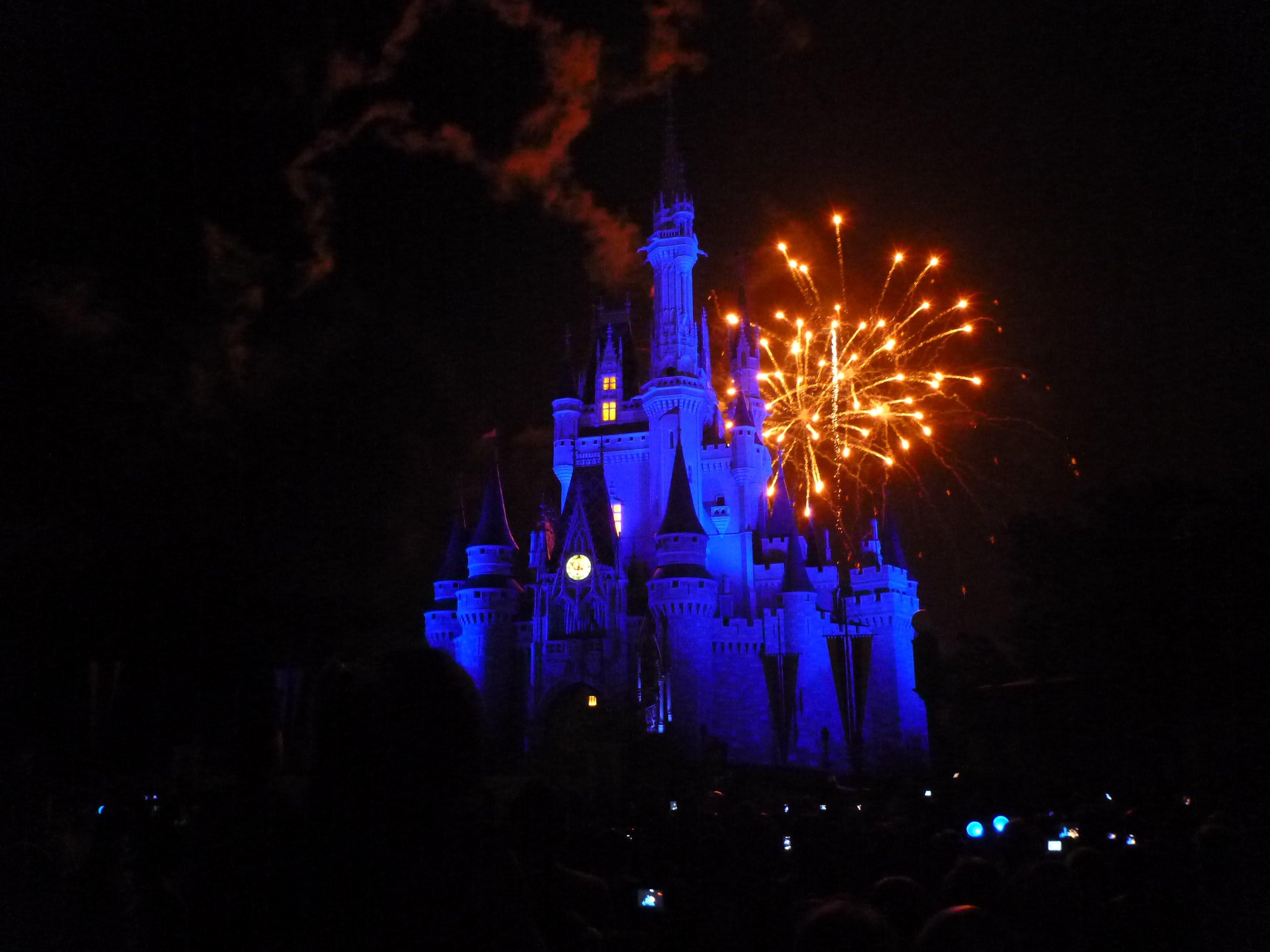 Saindo de lá já fomos direto para a frente do castelo para a queima de fogos. Fica LOTADO! O pessoal já vai chegando duas horas antes para pegar um bom lugar. chegamos as 21:00hs, uma hora antes.