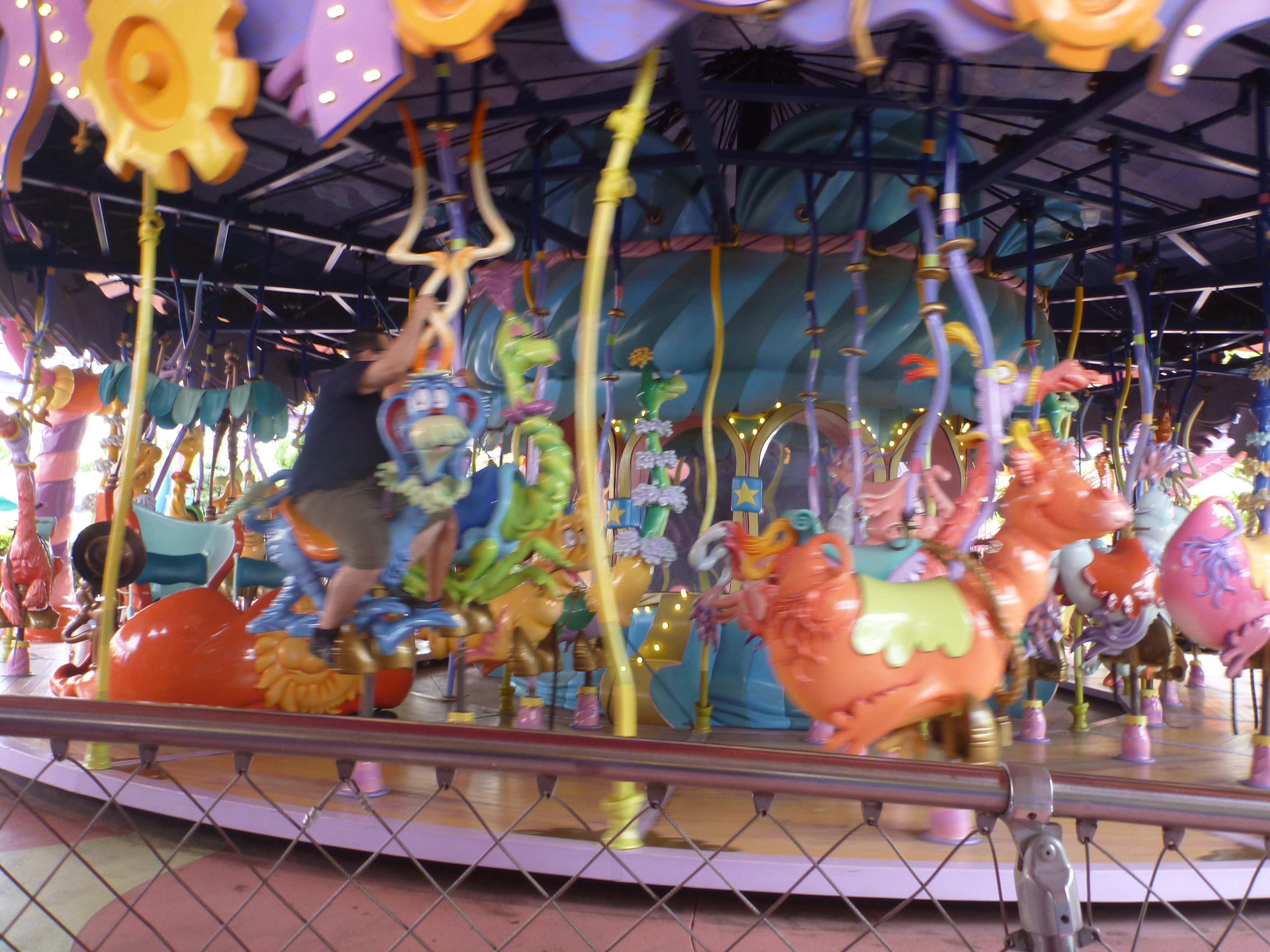 Esta entrada do parque é demais, tivemos que entrar no brinquedo “The cat in the rat”: