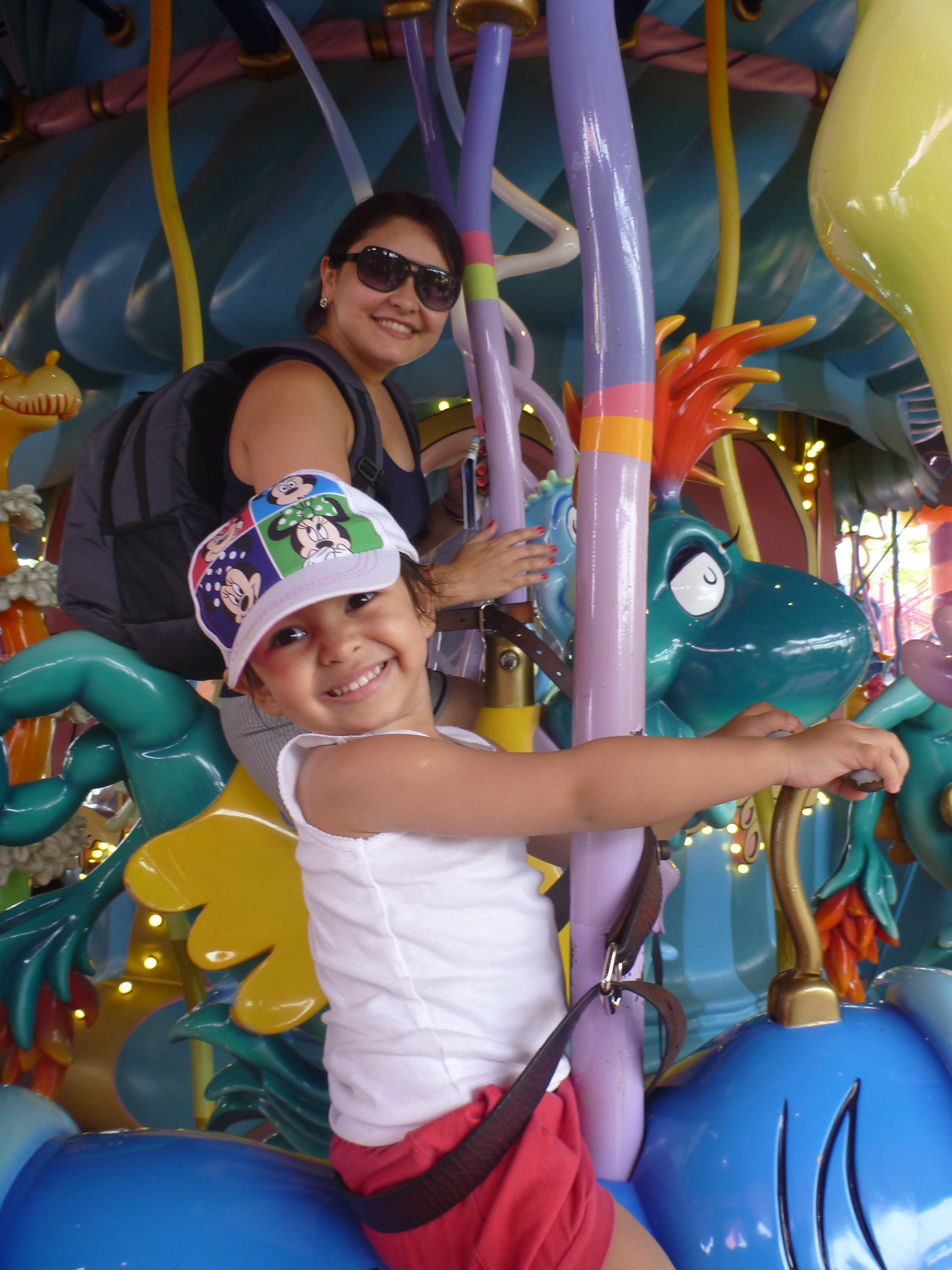 Seguimos na direção horário do parque e logo na entrada a Julia pirou vendo o Carrossel! Ela adorou e adora, não pode ver um! kkk. O Thiago também, não pode ver um para passar mal!!!