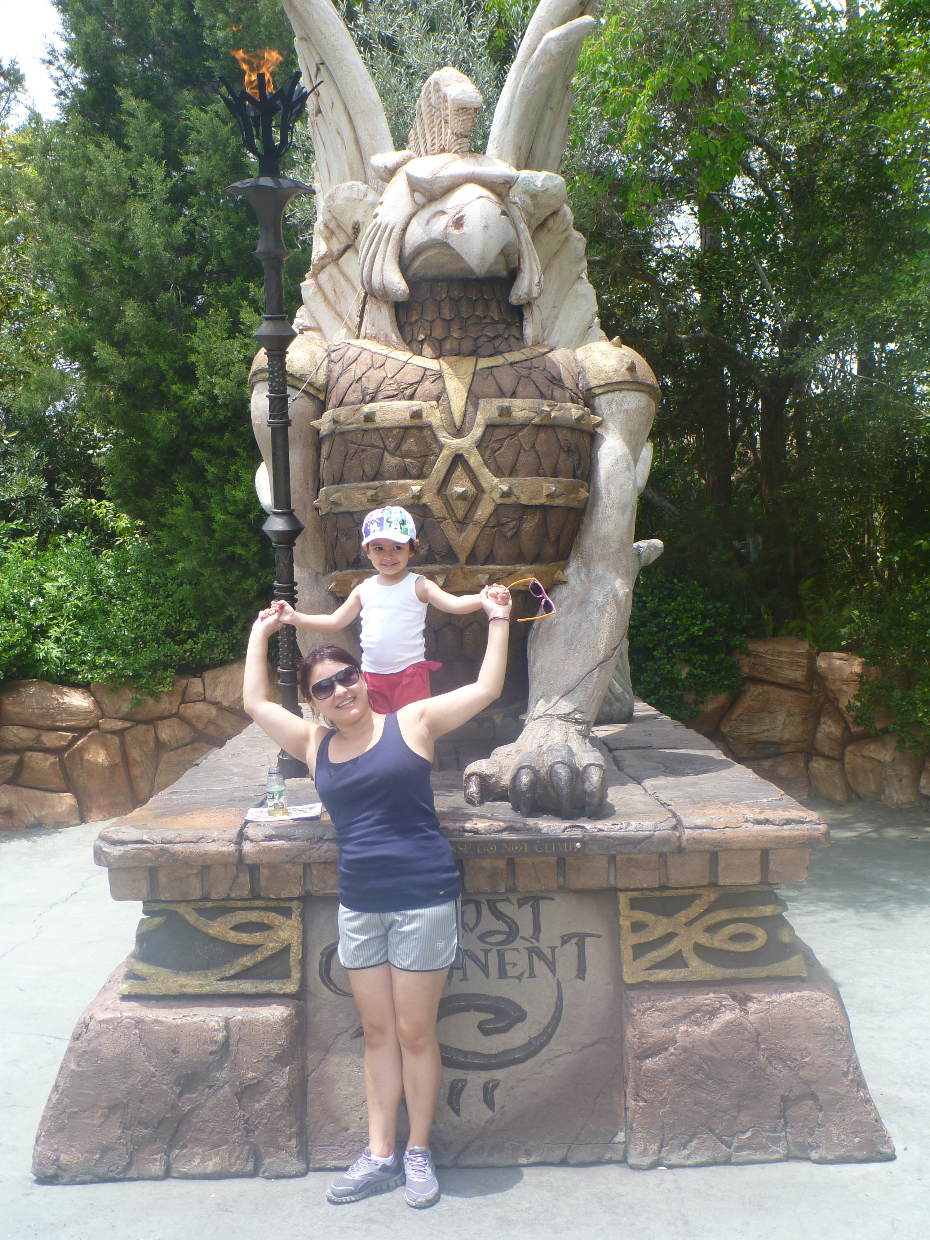 Logo de cara eu fui até o primeiro brinquedo “Dragon Challenge”. Fui sozinha pois não sabia que teria um espaço reservado para o casal com filhos (Child Swap). Chegando lá em cima eu percebi que o Thiago e a Julia poderiam ter entrado e me esperado sair do brinquedo.