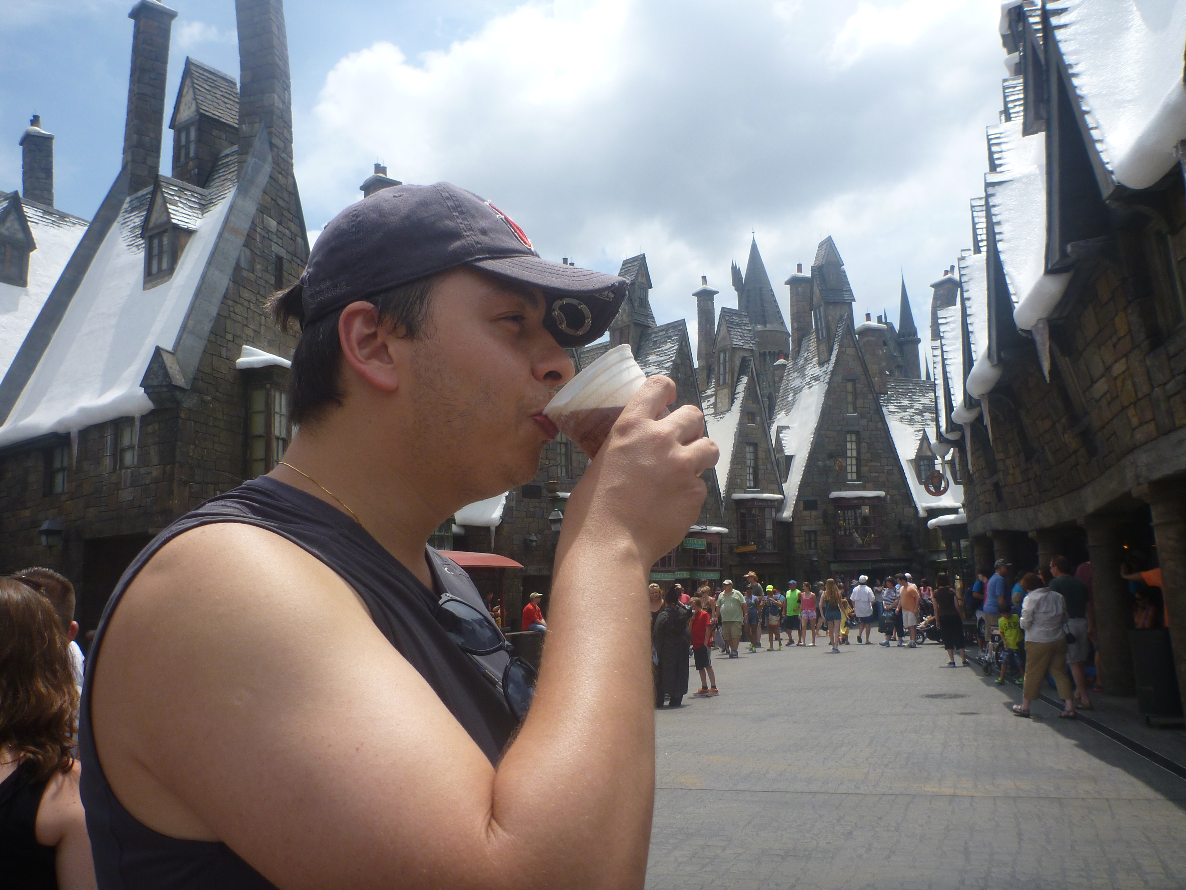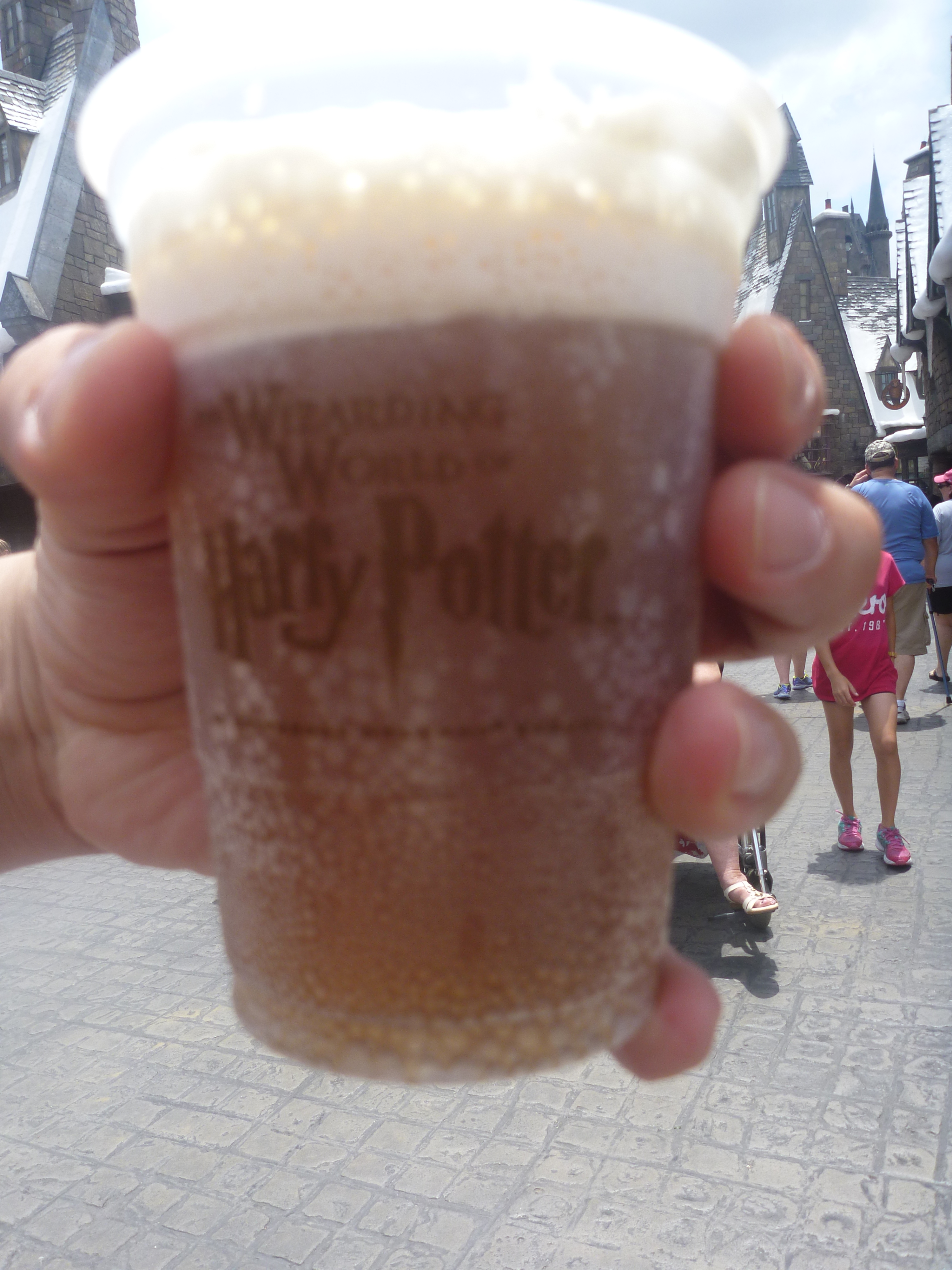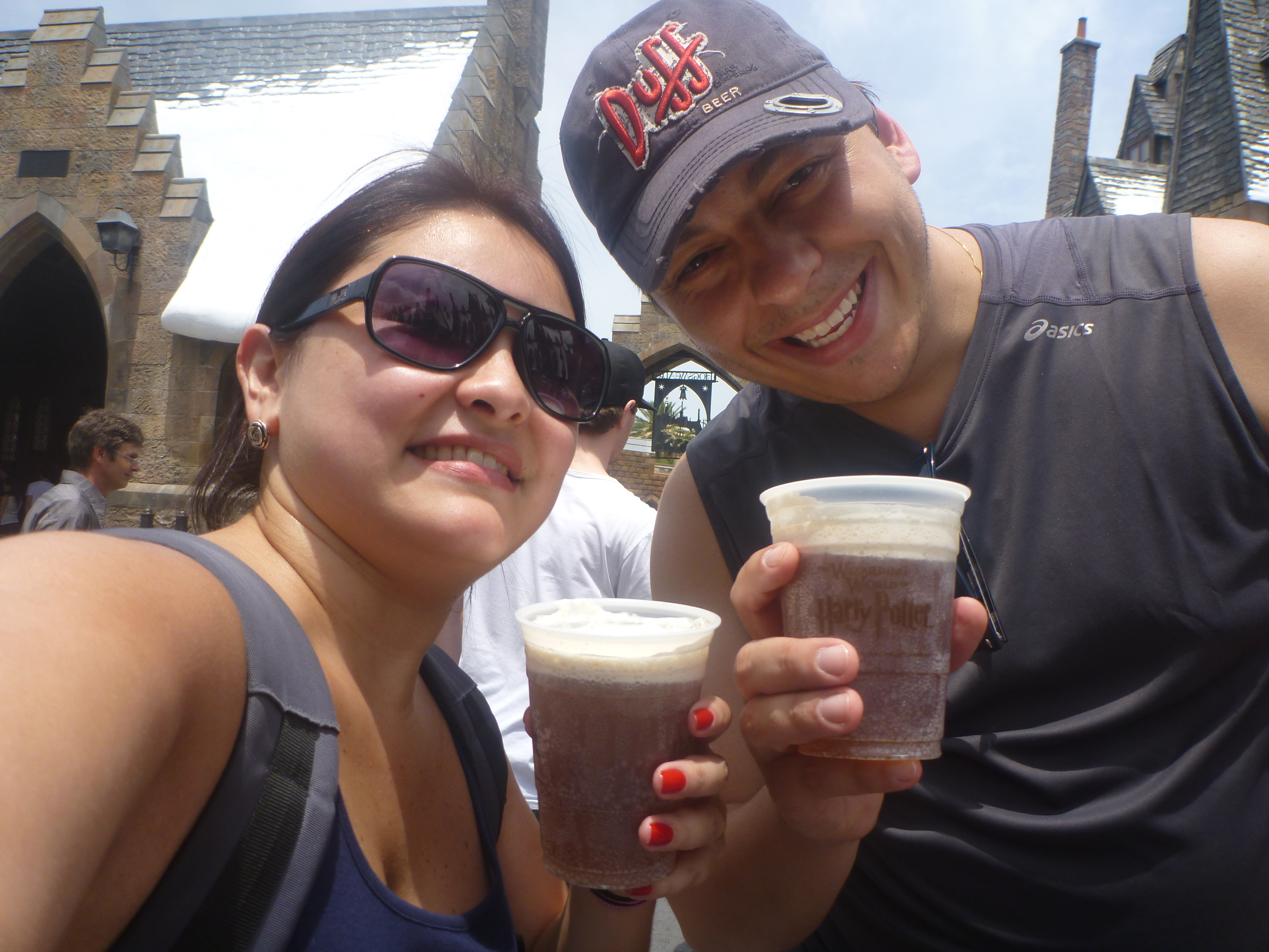 Apesar disso, logo ele viu a cerveja mais famosa do Harry Poter, a cerveja de manteiga, e tratou de comprar logo duas para provarmos. A cerveja é gostosa mas não de minha preferência por ser doce! Pedimos um copo para cada mas caso você não goste de cerveja doce o recomendado é pedir apenas 1 copo e dividir só para conhecer!