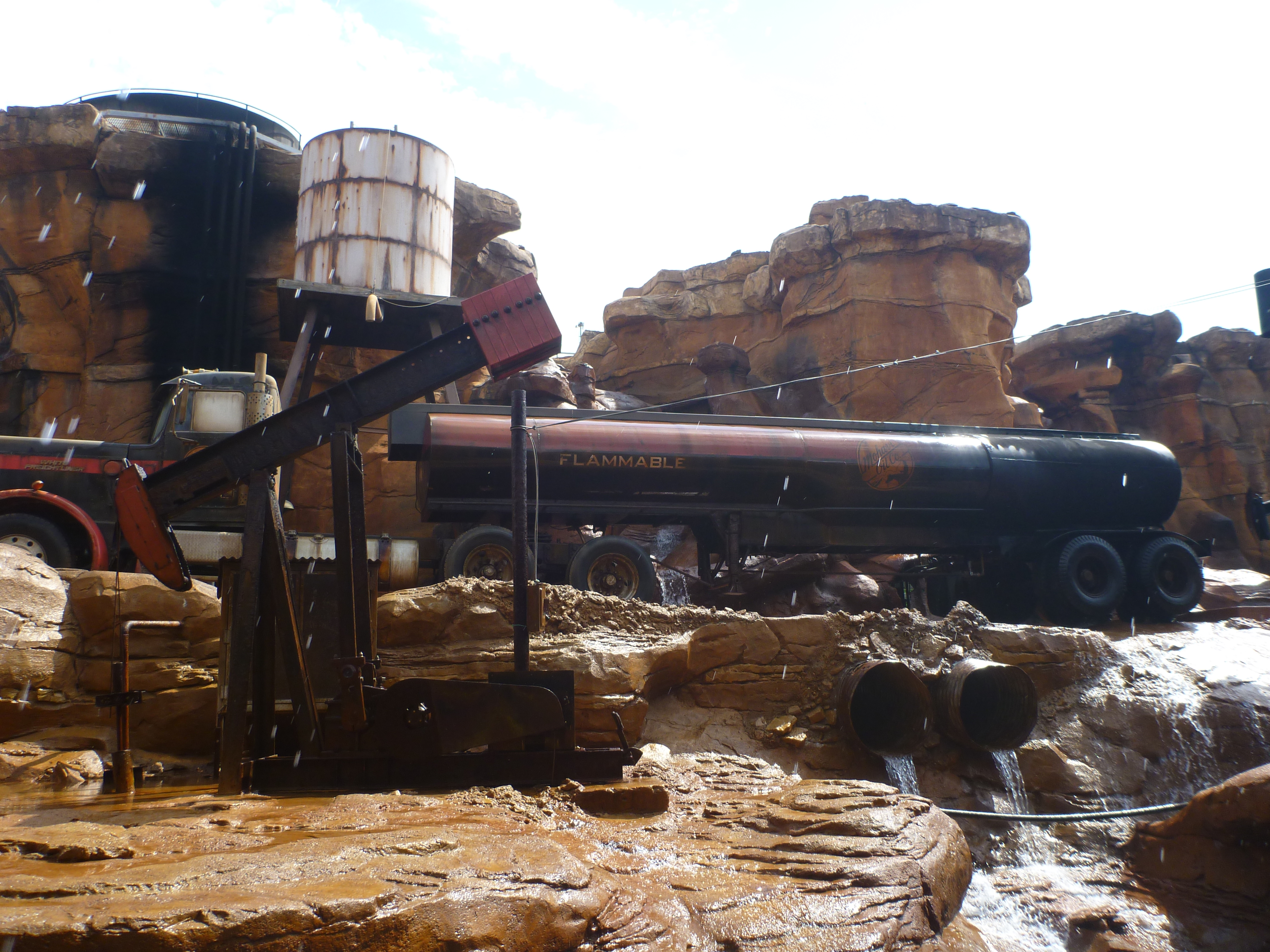 Saindo de lá começamos a contornar o parque e já que estávamos molhados por conta do brinquedo “River Adventure”, fomos em outro chamado “Rip Saw Falls”.