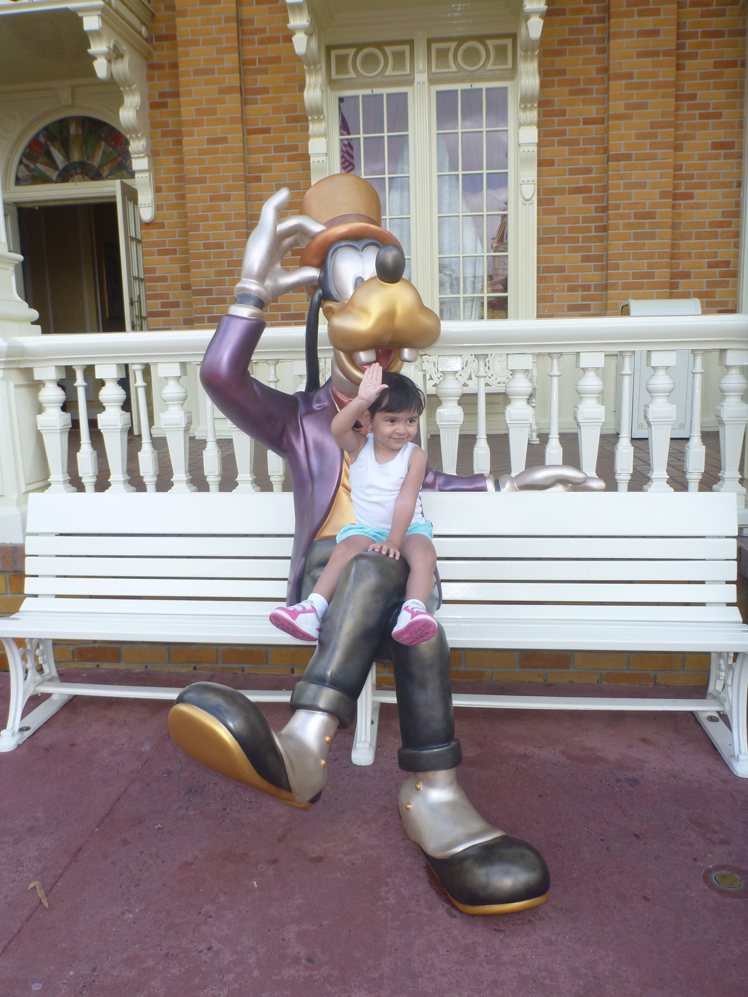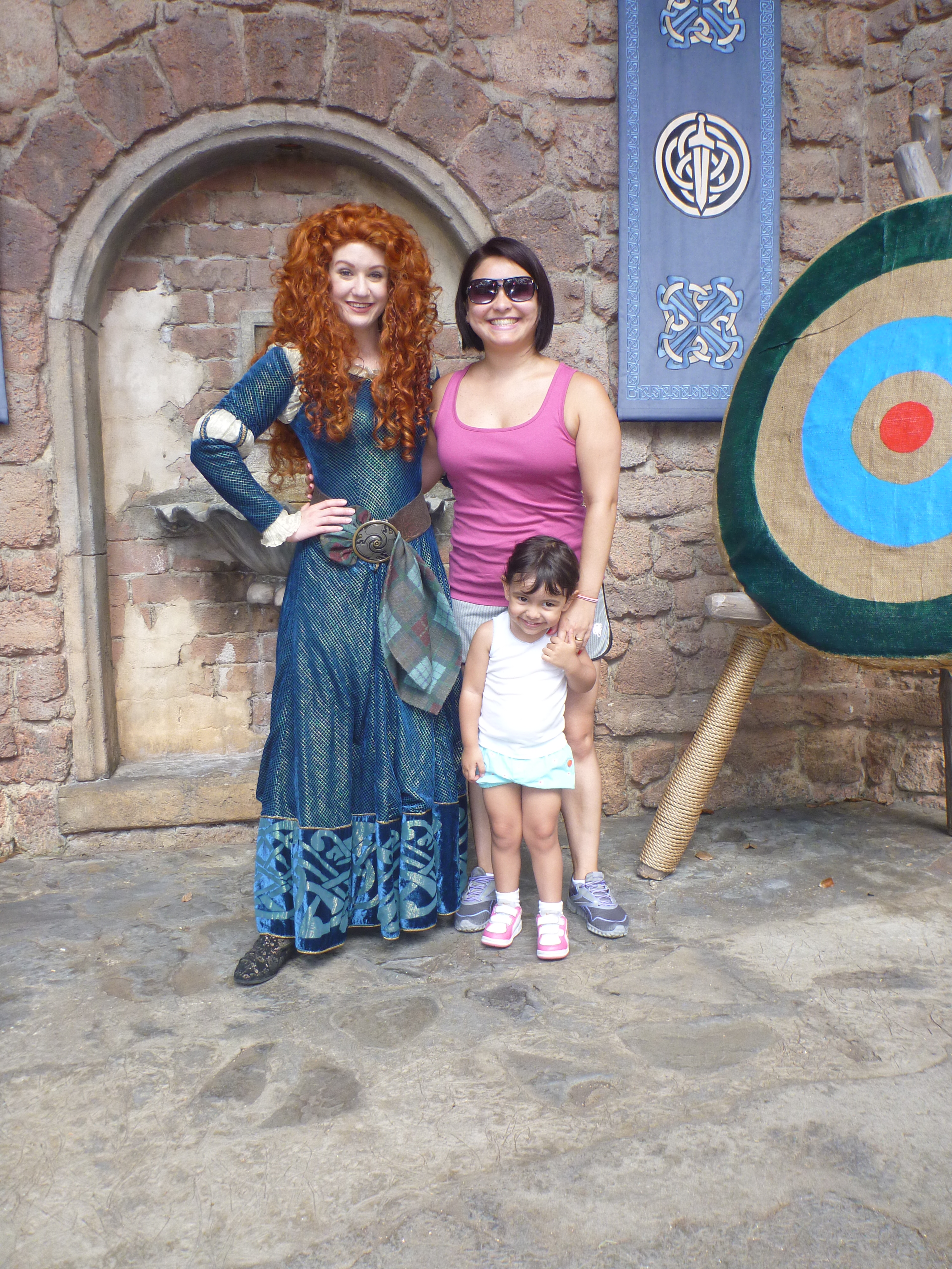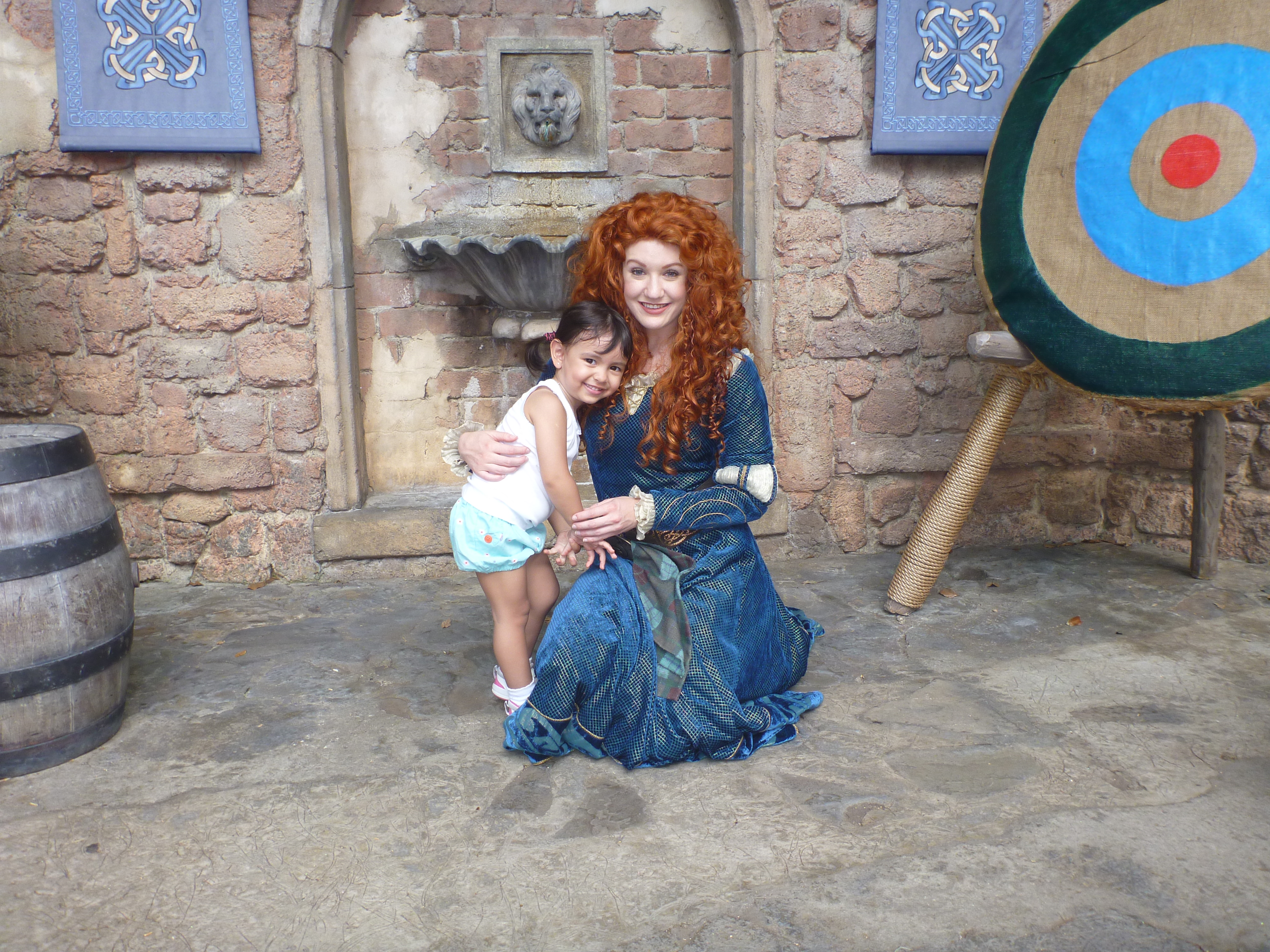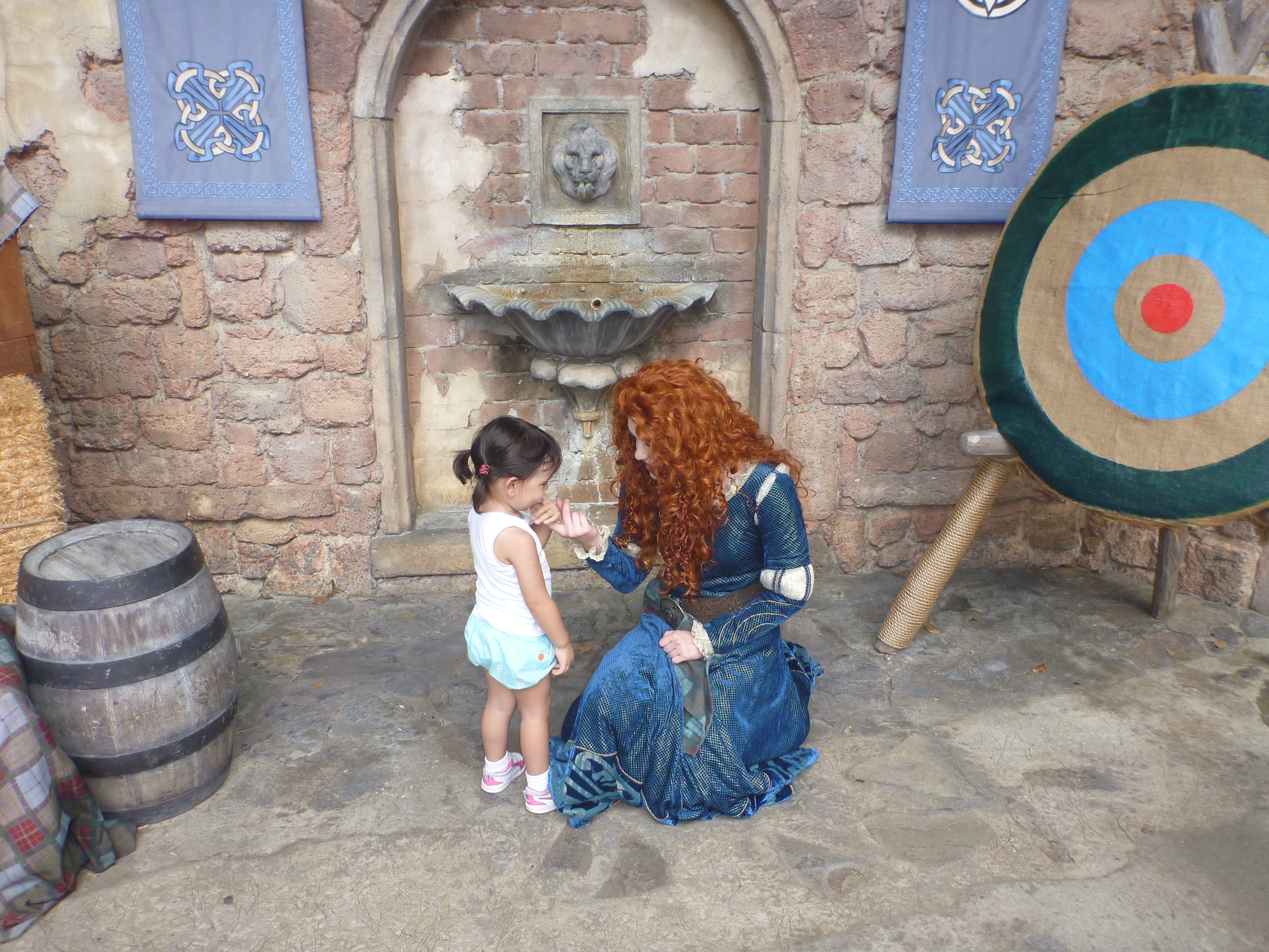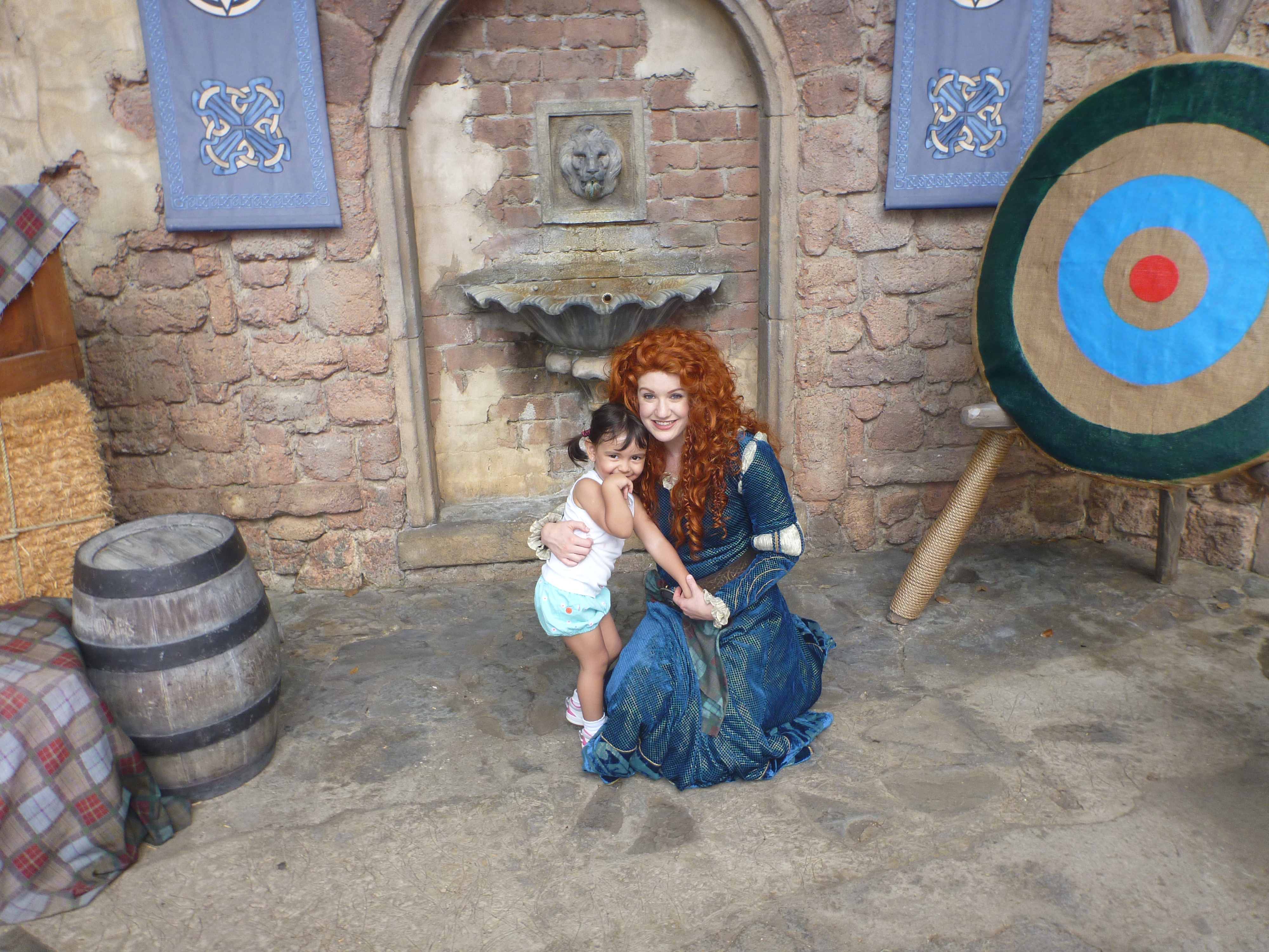 Esta parada foi show, na hora a Julia acordou!! Ela começou a identificar os personagens e o que mais ela gritava foi da Valente, que por sinal era linda! Oooohhhh!! Além da Valente vimos outros personagens como Pinóquio, Minnie, Mickey, Peter Pan, Pato Donald, Margarida, Dumbo, Pluto, Rapunzel, Ariel da Pequena Sereia entre outros personagens.