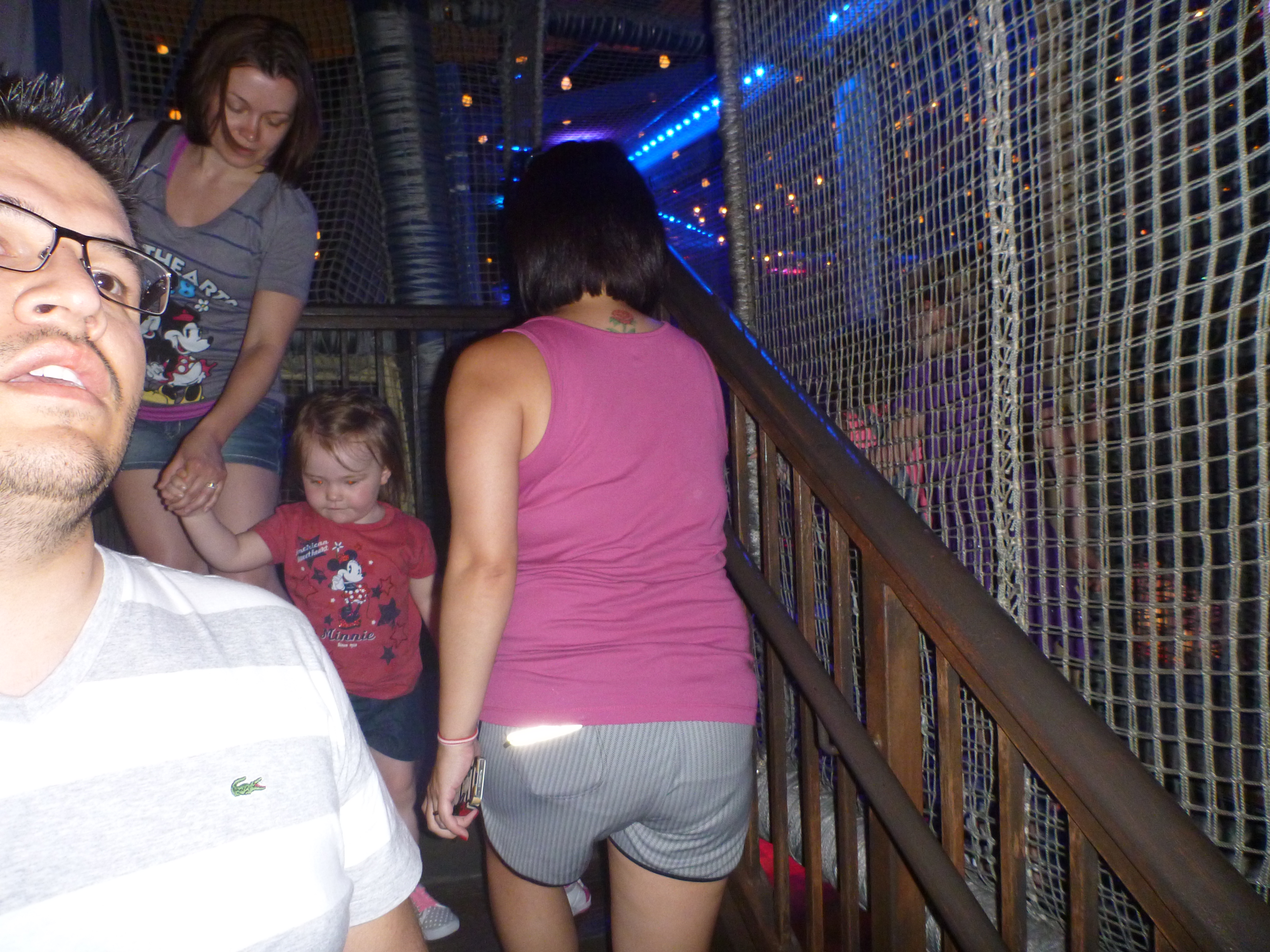 Bom, a Jú brincou e nós também né! A coluna doeu e vimos que não estávamos em forma mesmo. Passamos em um brinquedo que é de criança mas os pais podem acompanhar e tínhamos que ficar andando curvados…afff, pensei que não levantaria mais….hahahahahaha!