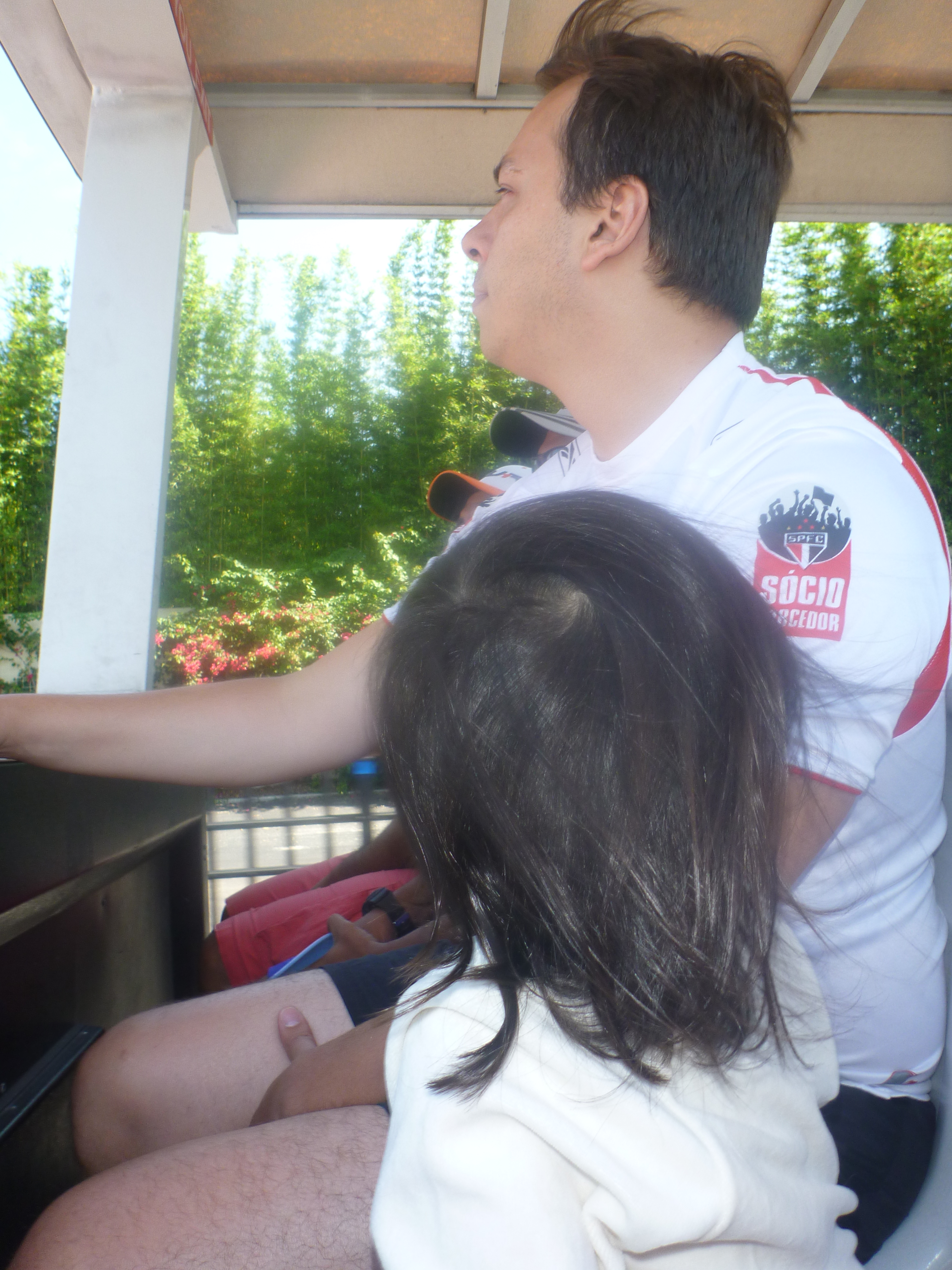 O Thiago ainda não estava muito bem quando saí do brinquedo mas falei que ele tinha que ir para ver o quanto era legal!