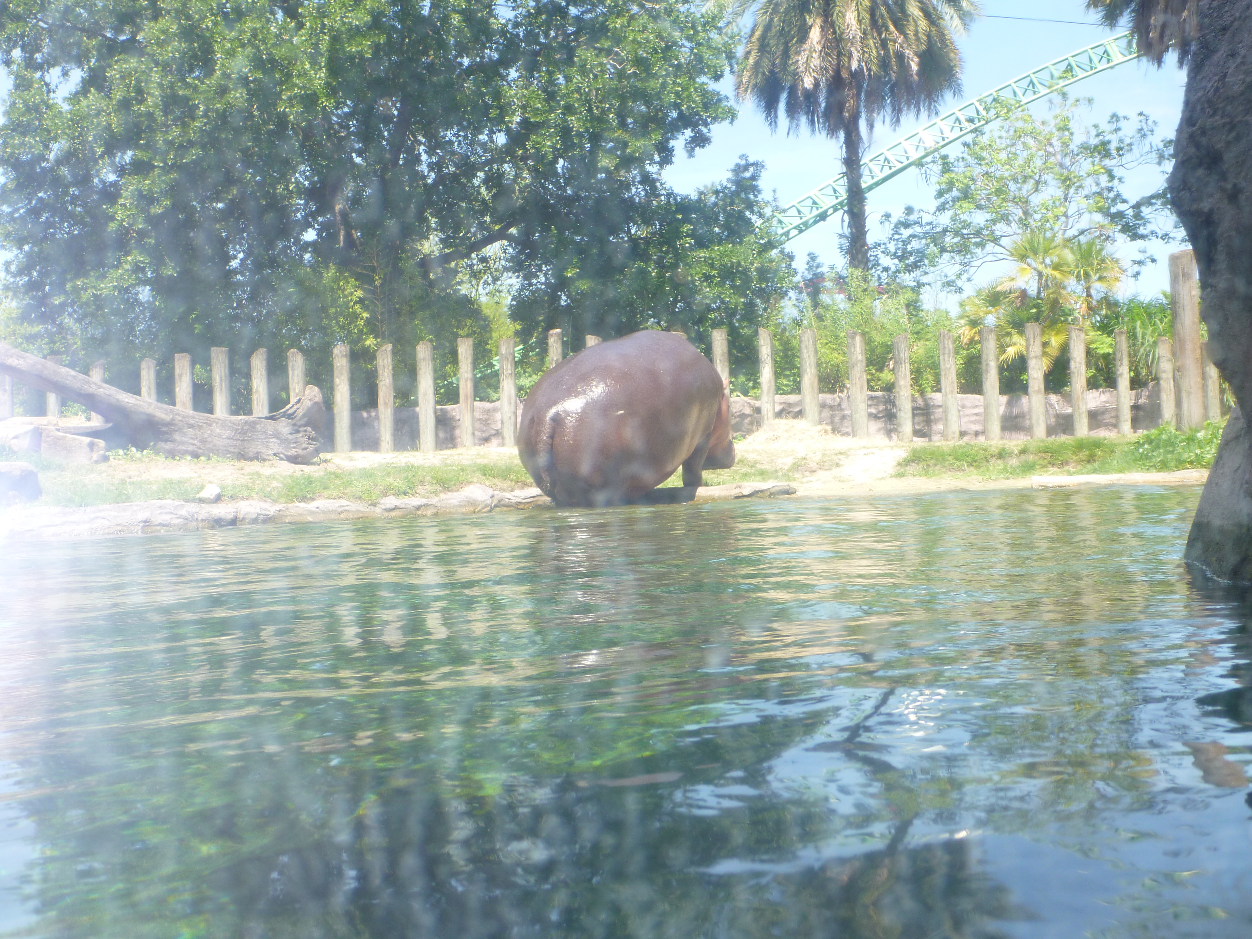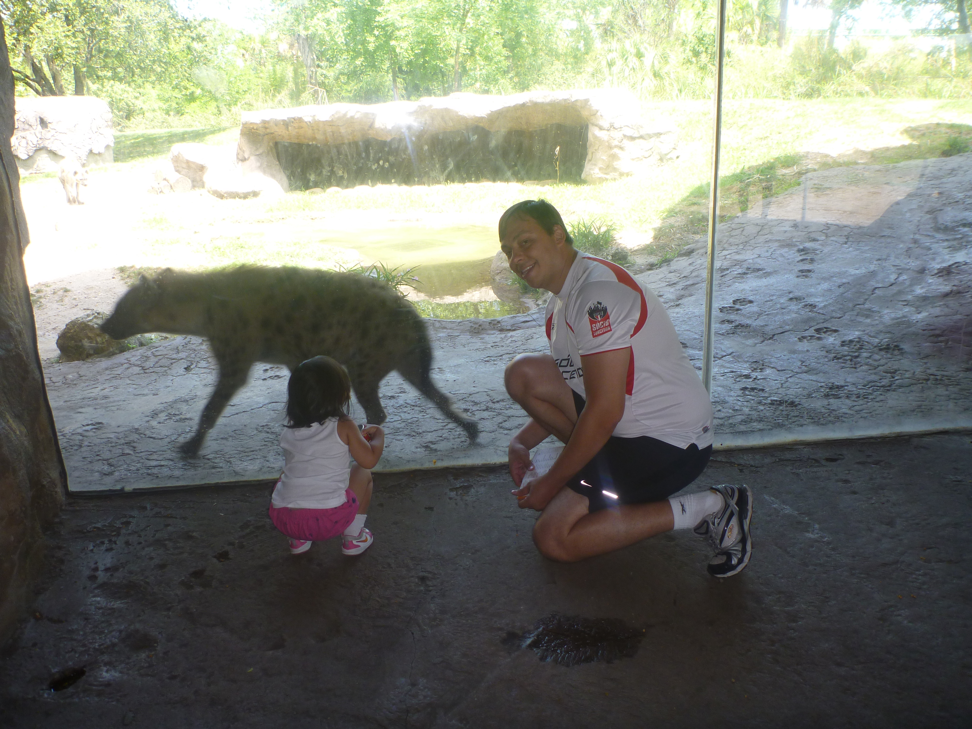 Ficamos divididos apenas por um vidro entre o hipopótamo, a iena, jacaré e o leão!
