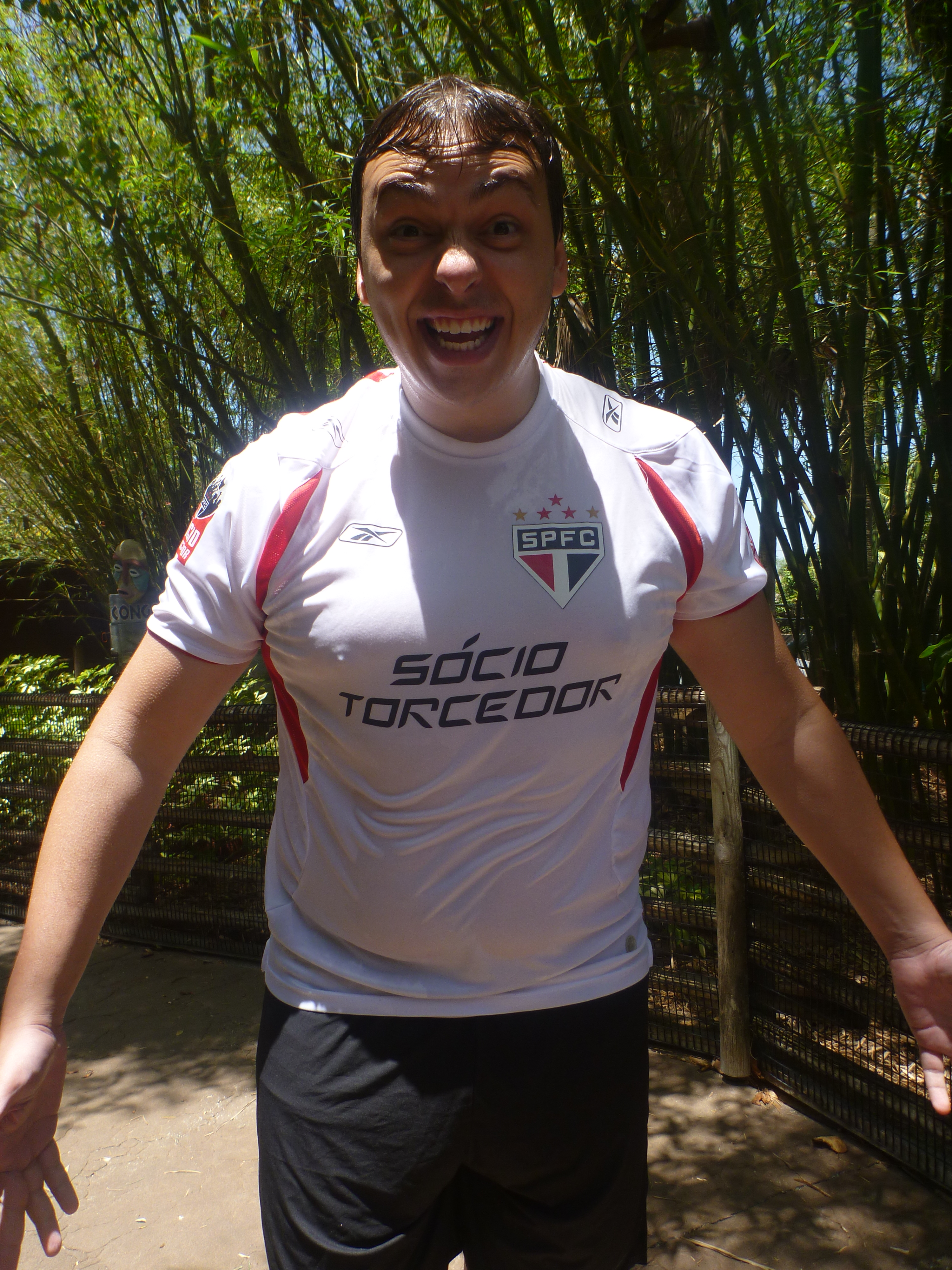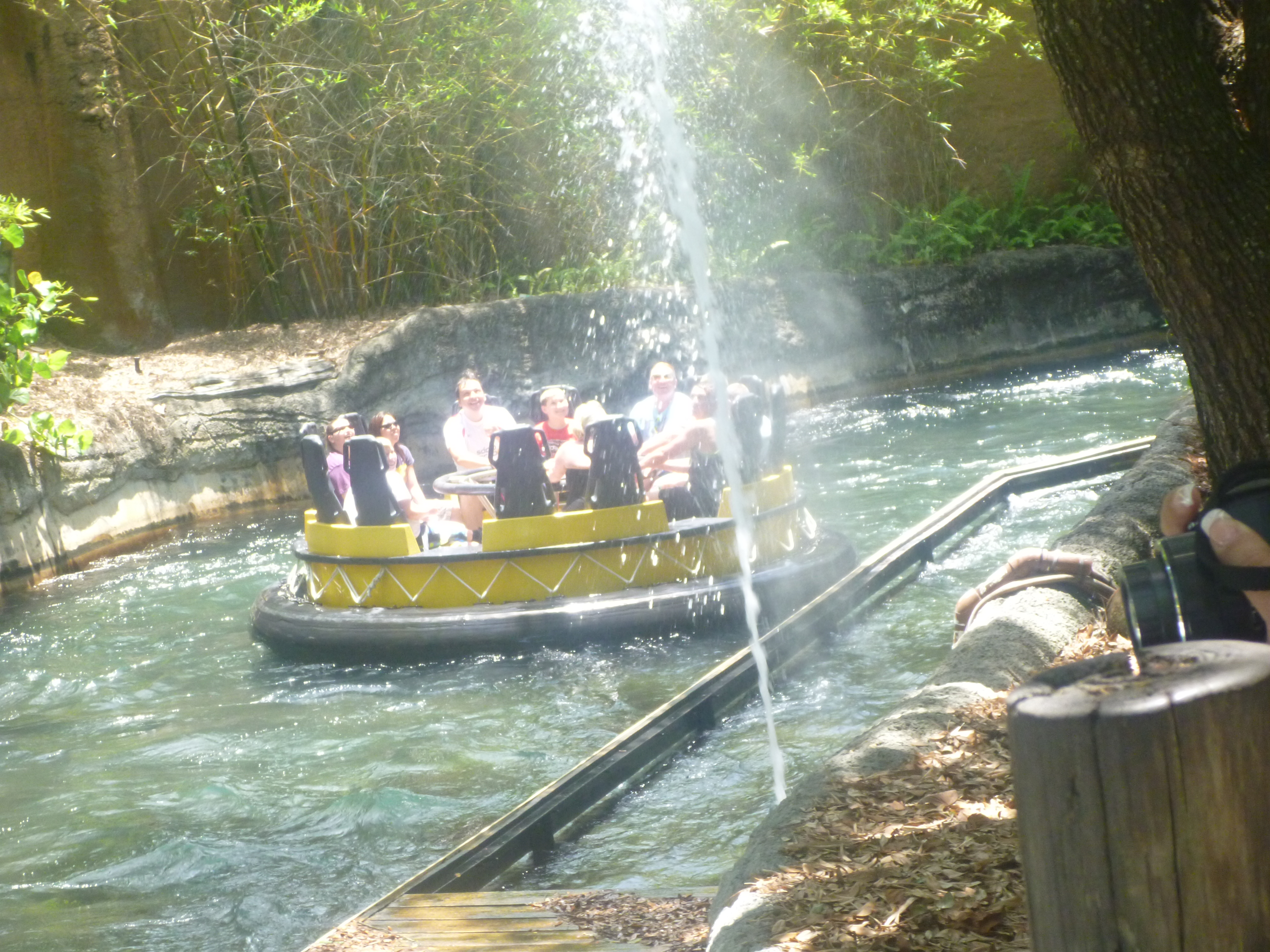 Depois o Thiago foi no “Congo River Rapids” (descida pela correnteza)! Coitado, voltou inteiro molhado! Este brinquedo é aquele que desce o rio seguindo a correnteza! Nem fui, eu estava com medo de me molhar e não fica legal durante o dia!