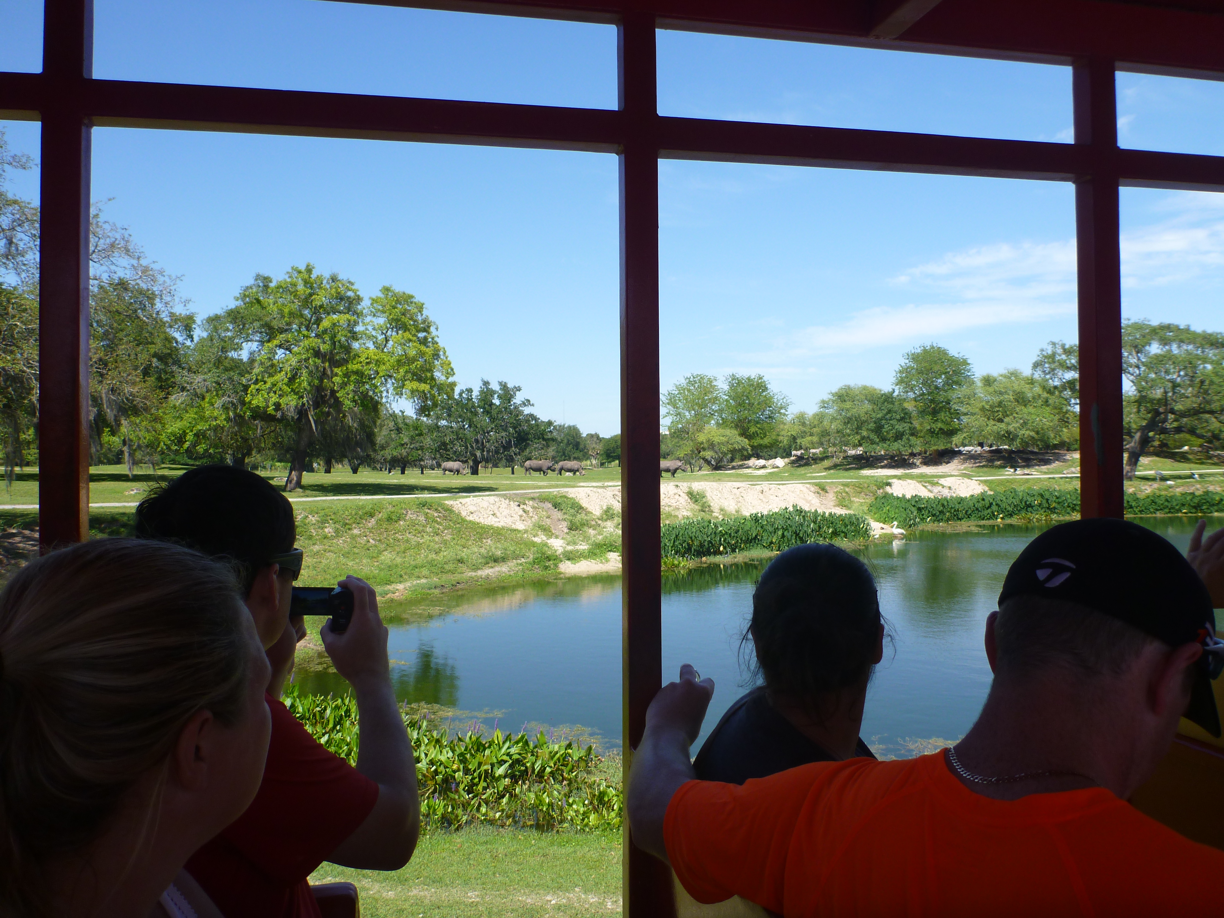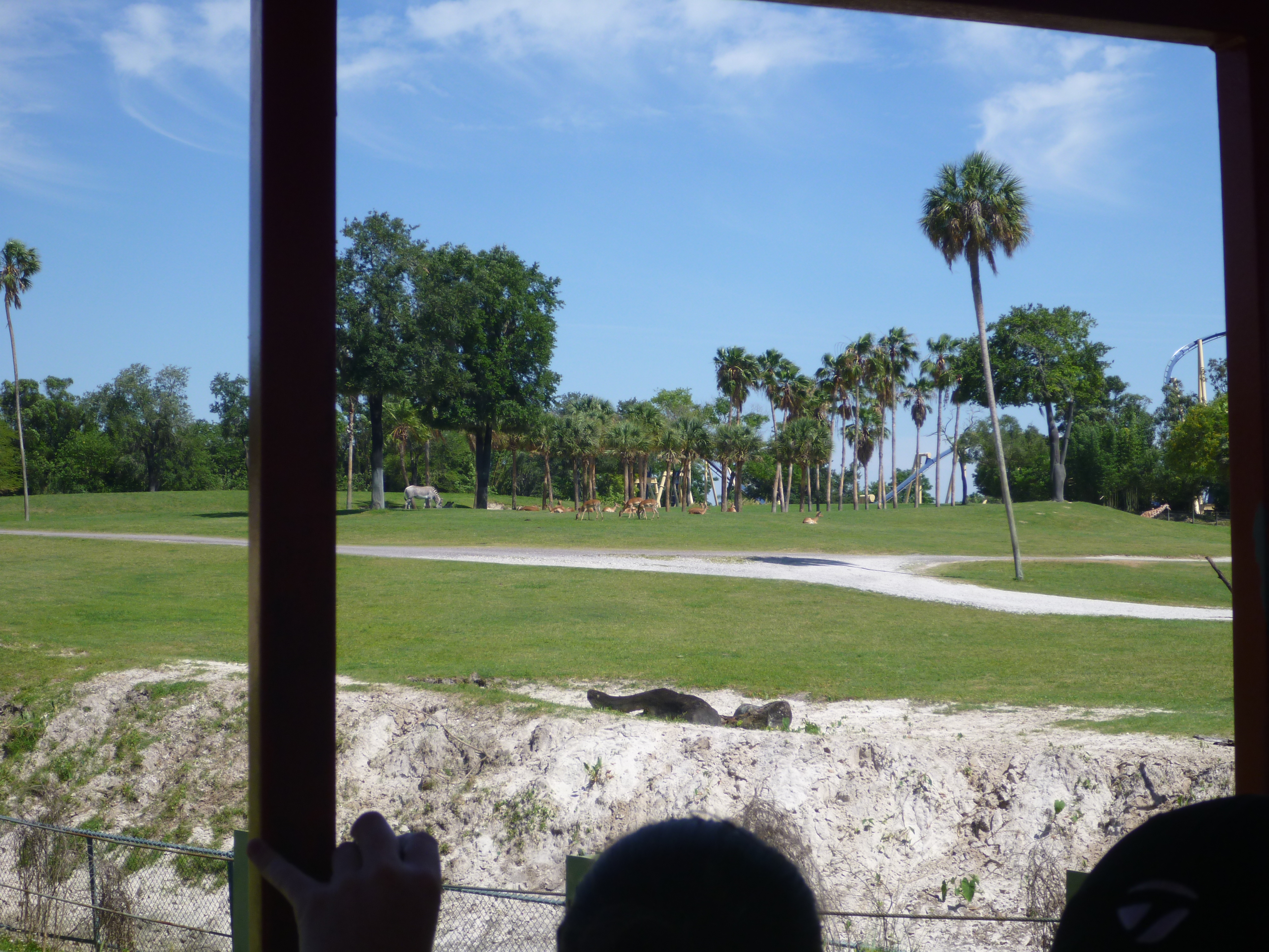 Terminando o almoço, pegamos o trem que dá a volta no parque. Pegamos na estação Congo e passamos por todo o parque. Ele mostra as principais atrações e passa pela parte dos animais.