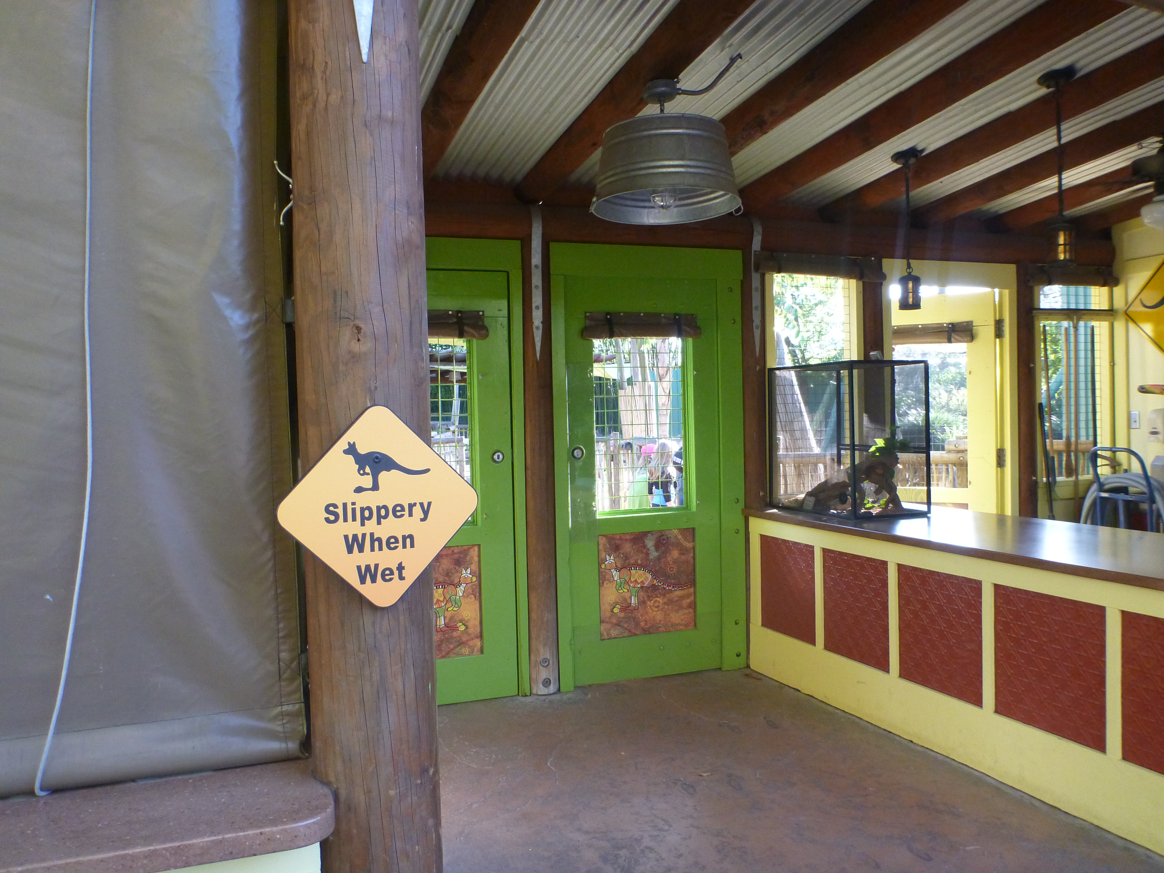 Pena que a Julia não pôde entrar, não é permitido a entrada de crianças com idade menor de 5 anos. A mulher disse que o canguru pode soltar algum tipo de bactéria que crianças abaixo desta idade não tem imunidade!