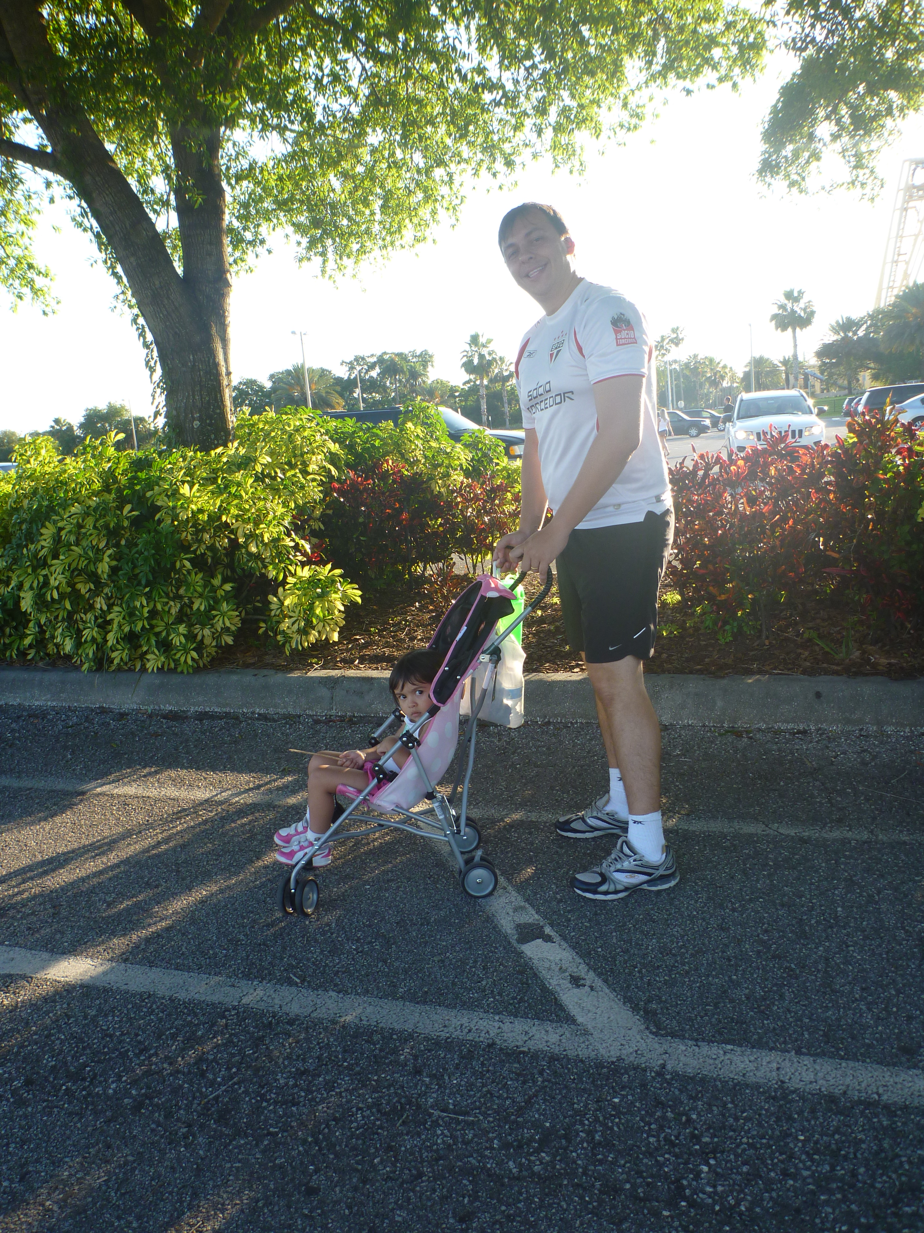 Ficamos lá o dia todo e a Julia até dormiu no carrinho!