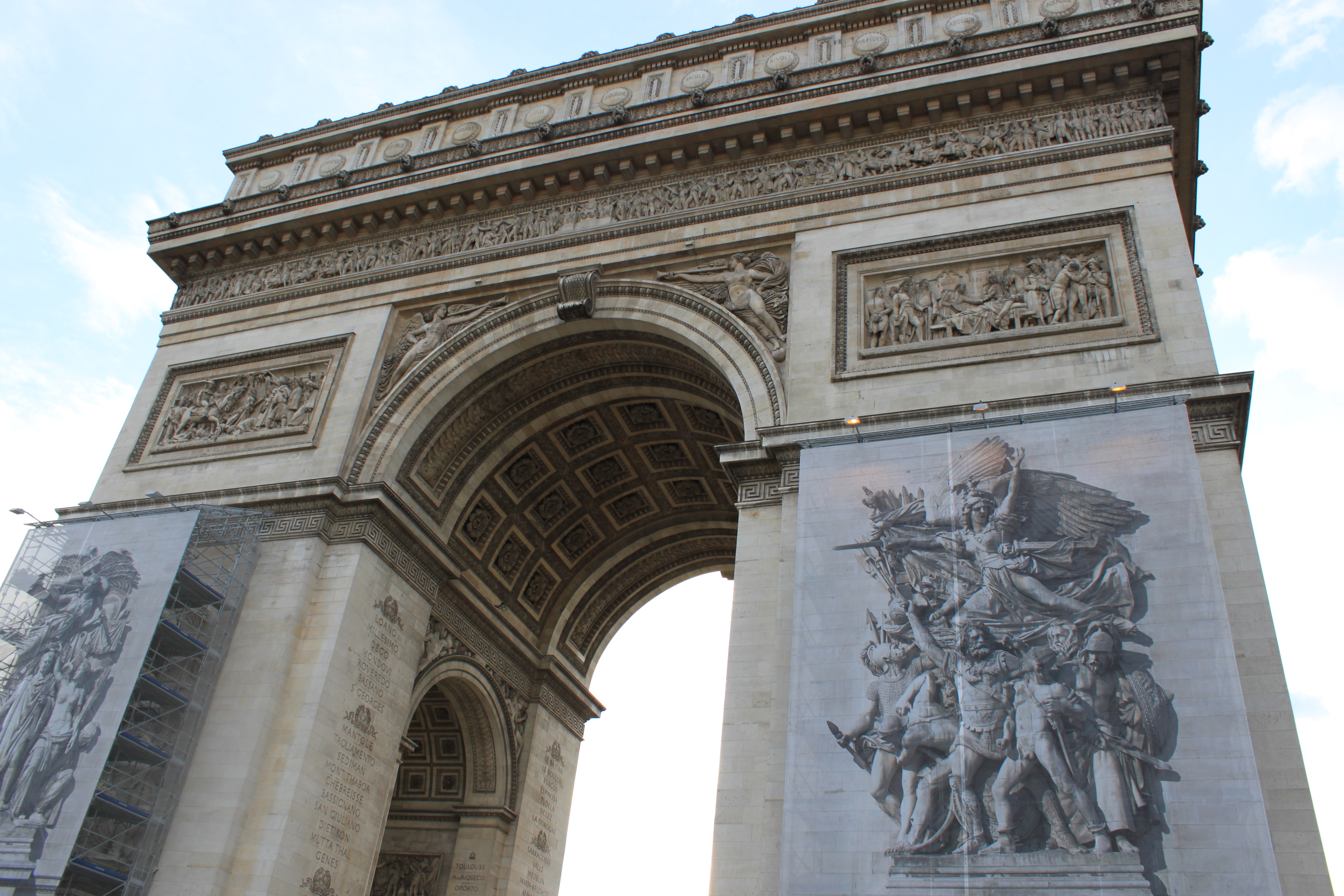 Continuamos andando até o Arco do Triunfo. Chegando lá, tivemos que usar uma passagem subterranea até o Arco. Compramos os ingressos de 9 euros e subimos 284 degraus… só de lembrar cansa. Lá de cima temos uma vista maravilhosa, conseguimos ver quase toda Paris e seus monumentos. Imagina quando subir a Torre Eifel.